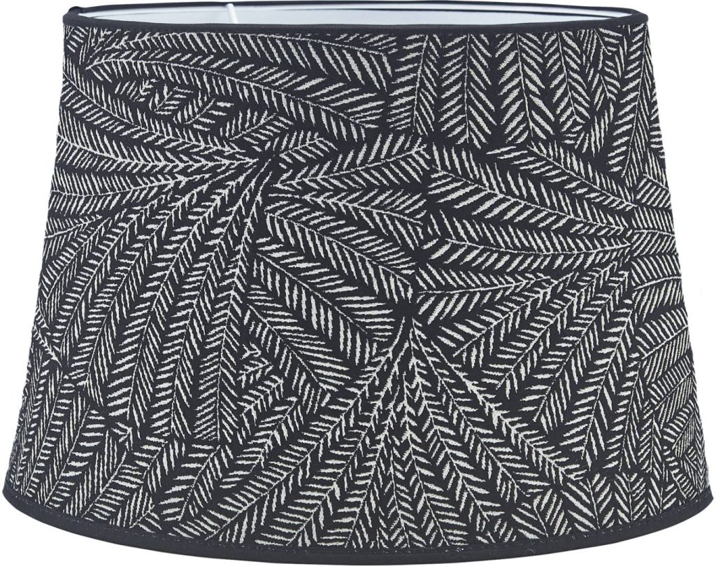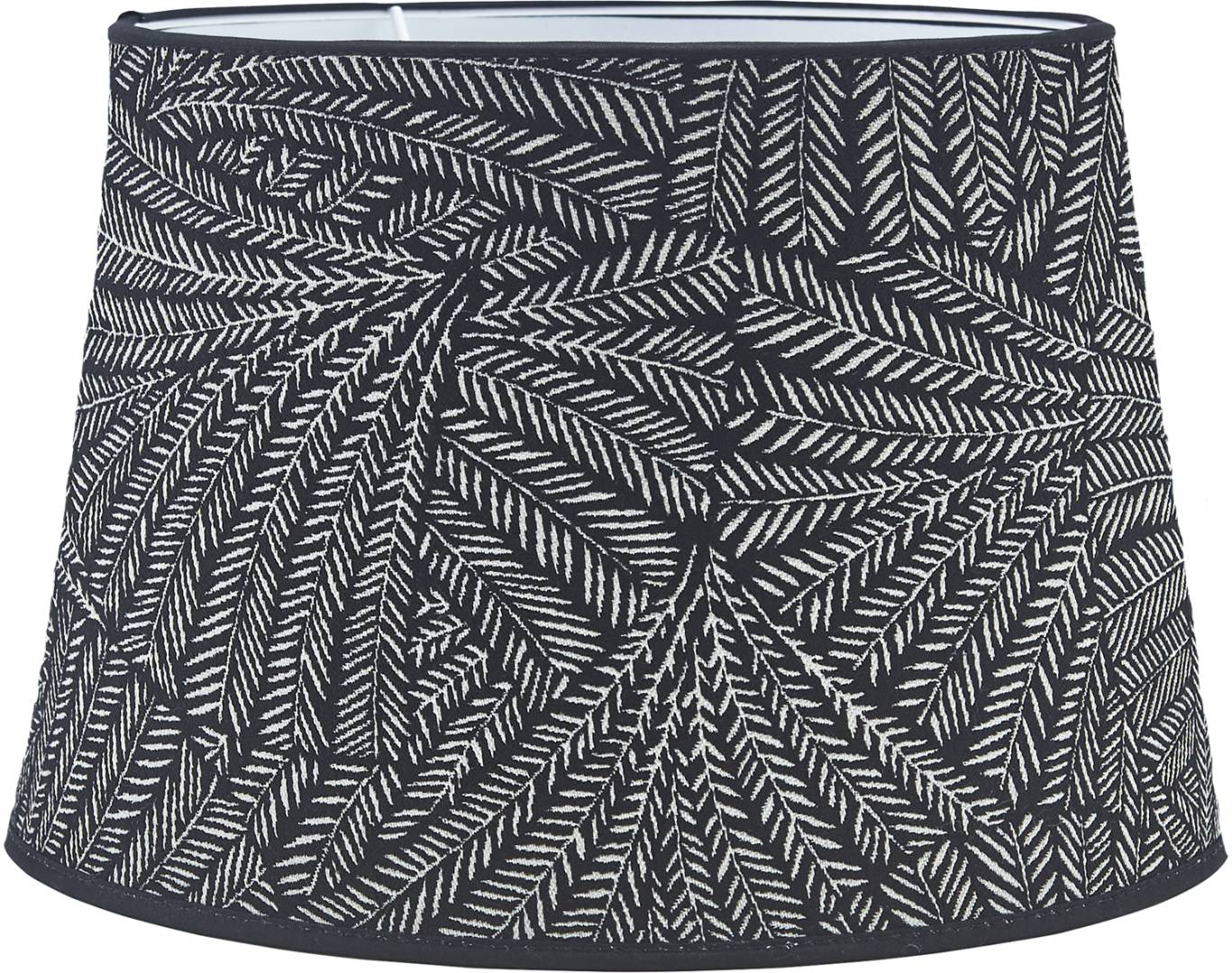 Ovaalin muotoinen lampunvarjostin jacquard-kudottua kangasta, 55% polyesteri/45% puuvilla.
