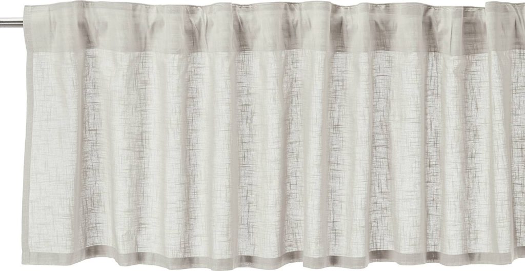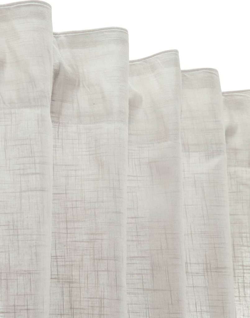 Verhokappa kevyttä puuvillakangasta. Verhossa on monitoiminauha yläreunassa sekä päärmätyt sivut ja alareuna.