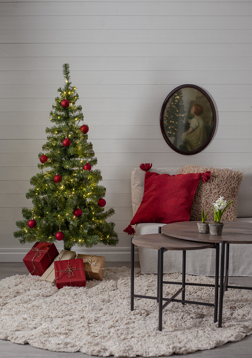 Sisä- ja ulkokäyttöön sopiva kaunis 150 cm korkea vihreä joulukuusi. Kuusta valaisee 250 lämpimän valkoista LED-valoa. Kuusi koostuu kahdesta osasta. Oksat ovat kiinteästi rungossa, ja ne taivutetaan alaspäin kuusta kootessa.