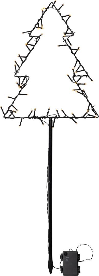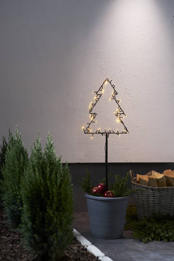 Tyylikäs kuusi-valokoriste puutarhaan 60 lämpimän valkoisella LED-valolla. Helppo sijoittaa maapiikkien avulla esimerkiksi ruukkuun tai istutusten lomaan.