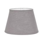 Ovaalin muotoinen lampunvarjostin pellavakangasta. Valkoinen sisäpinta, rullatut reunat.