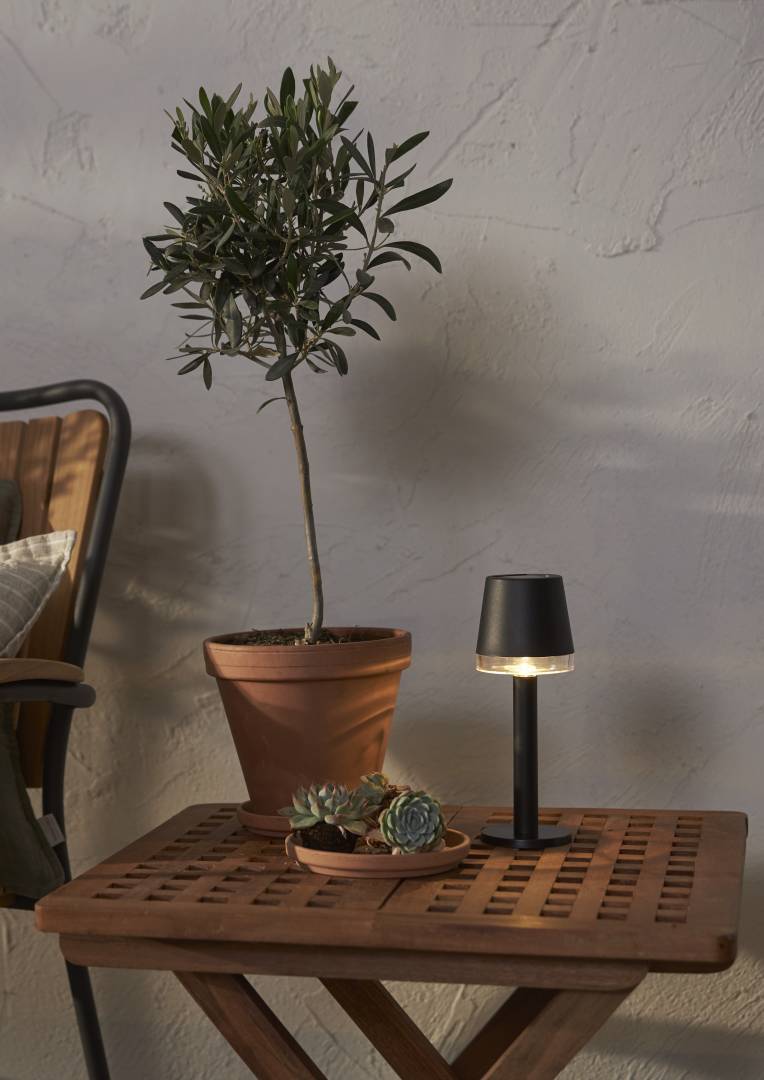 Aurinkokennolla toimiva pöytävalaisin, joka sopii esimerkiksi terassin tai parvekkeen pöydälle. Hämärän tullen pöytävalaisimesta loistaa lämpimän valkoinen valo 5 lumenin valoteholla.