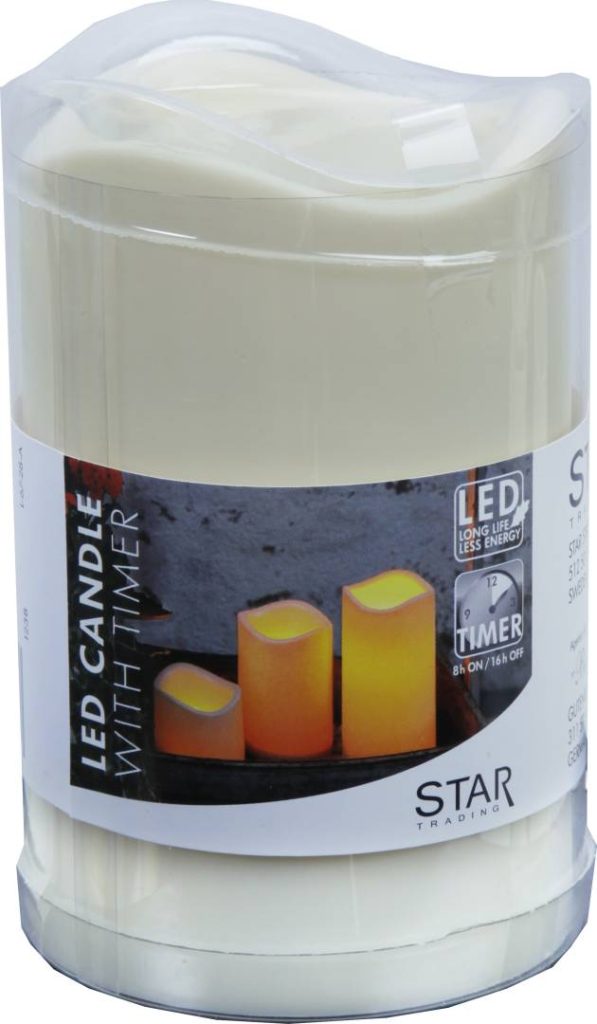 Muovinen sekä ulko- että sisäkäyttöön sopiva LED-kynttilä. Valon sävy: keltainen.