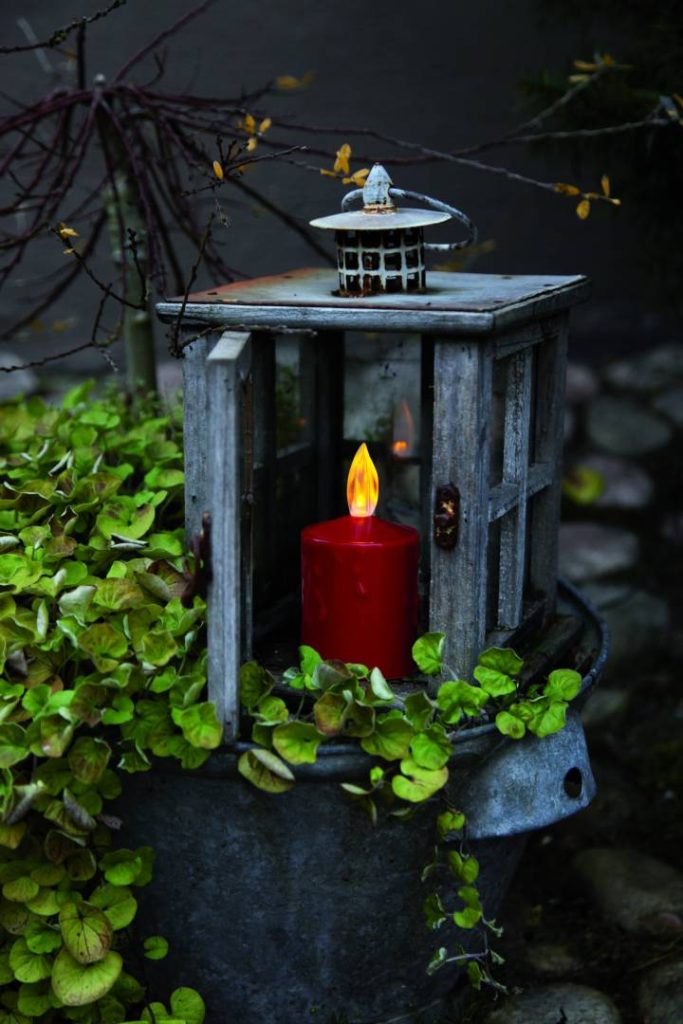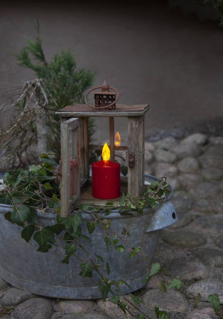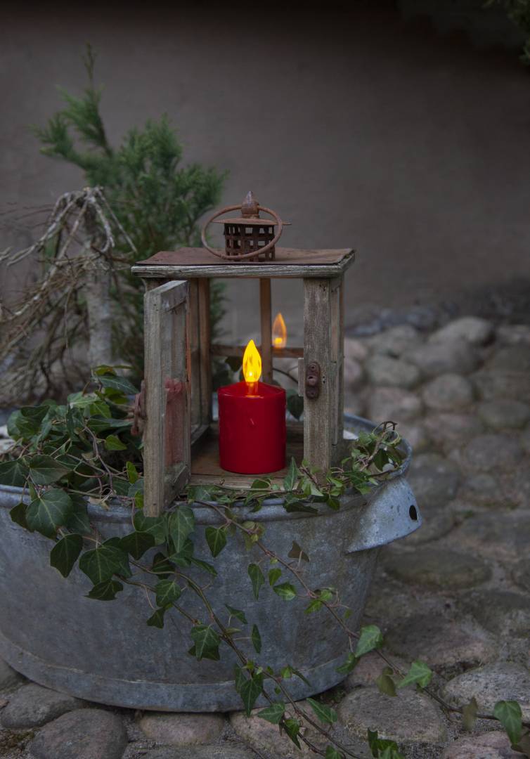 Paristokäyttöinen LED-kynttilä hämäräkytkimellä. Ulkokäyttöön.