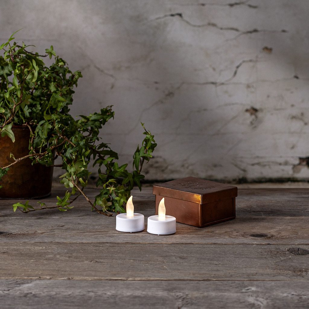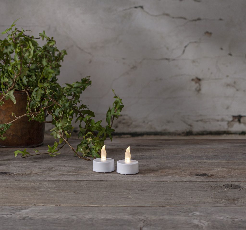 Muovista valmistetussa Paulo-tuikkukynttilässä on lämpimän valkoinen valo. Pakkaus sisältää kaksi sisäkäyttöön sopivaa kynttilää.
