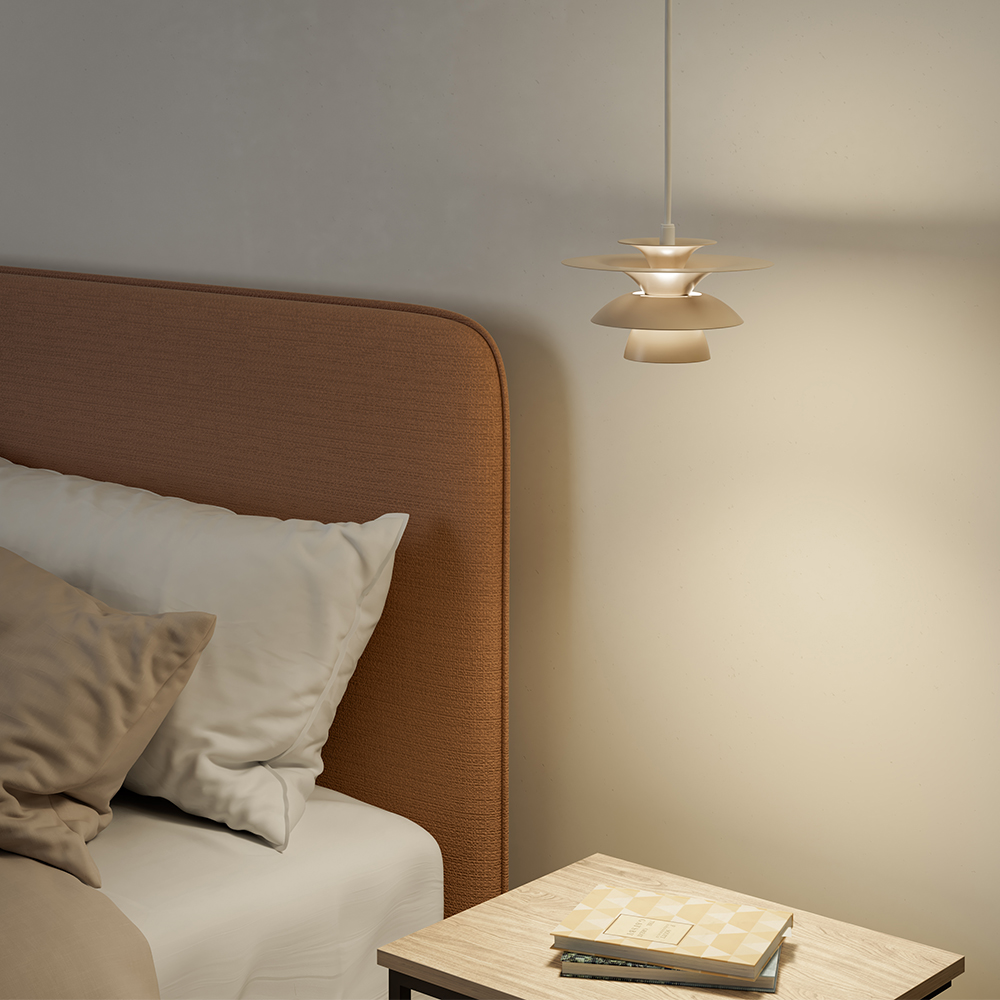 Vaalea, hillityn värinen valaisin on helppo yhdistää klassiseen pohjoismaiseen sisustukseen. Väripaletti sulautuu saumattomasti luonnollisiin ympäristöihin, mutta sopii myös täydellisesti graafisiin sisustustyyleihin, joissa pienillä yksityiskohdilla on suuri merkitys.