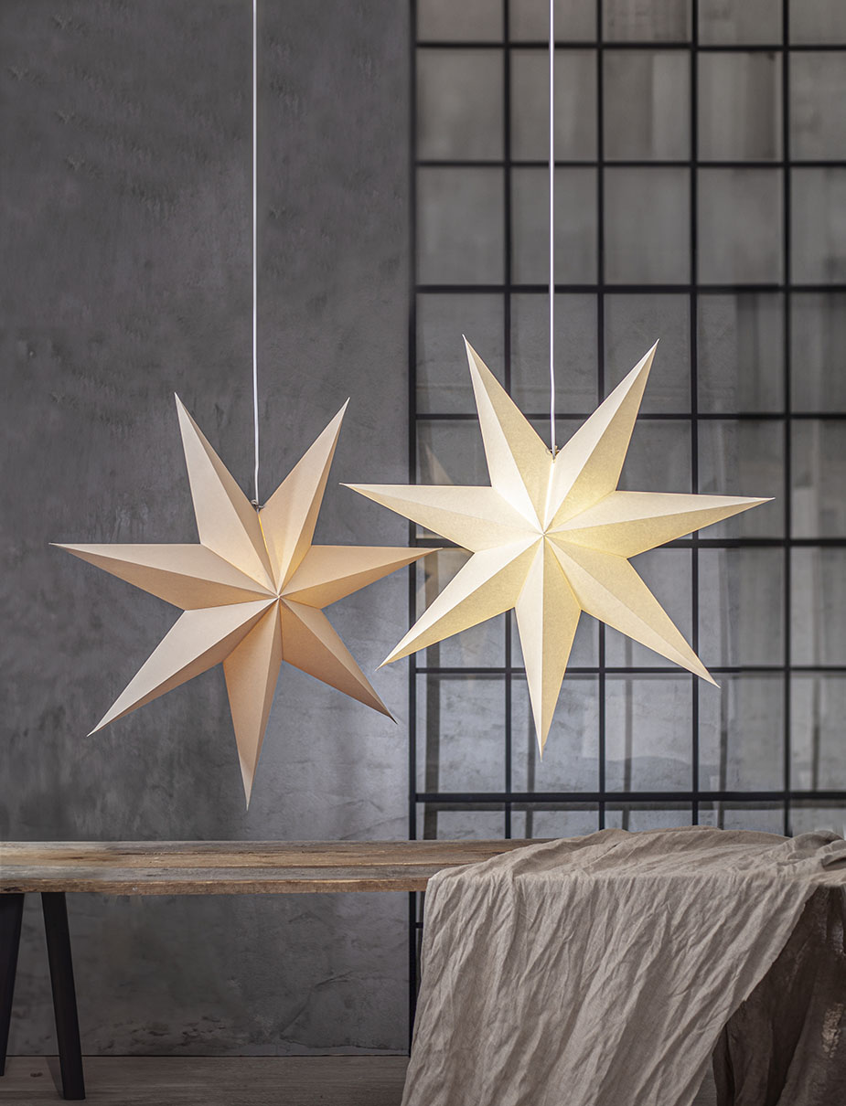 Kaunis, pelkistetty beigen sävyinen paperitähti ikkunaan tai seinälle. Tuo kotiin ihanaa joulutunnelmaa. Tähdessä on käytetty FSC-merkittyä -paperia.
