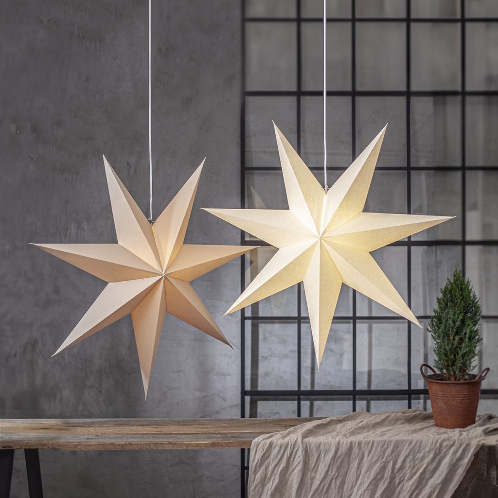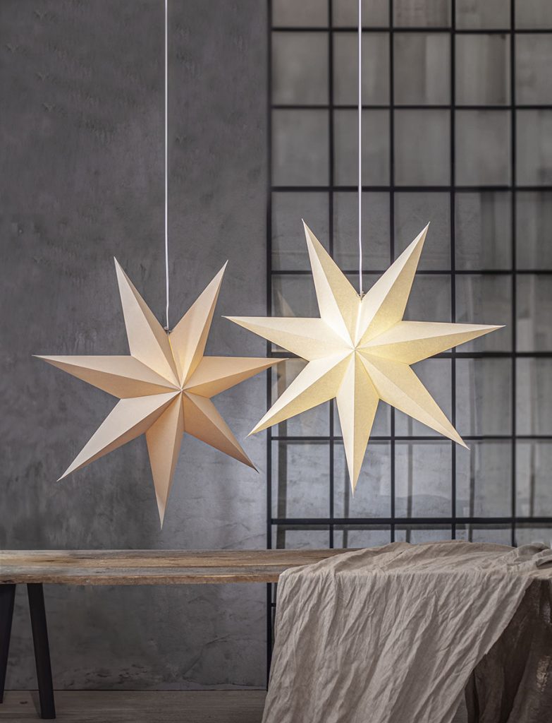 Kaunis, pelkistetty valkoinen paperitähti ikkunaan tai seinälle. Tuo kotiin ihanaa joulutunnelmaa. Tähdessä on käytetty FSC-merkittyä -paperia.
