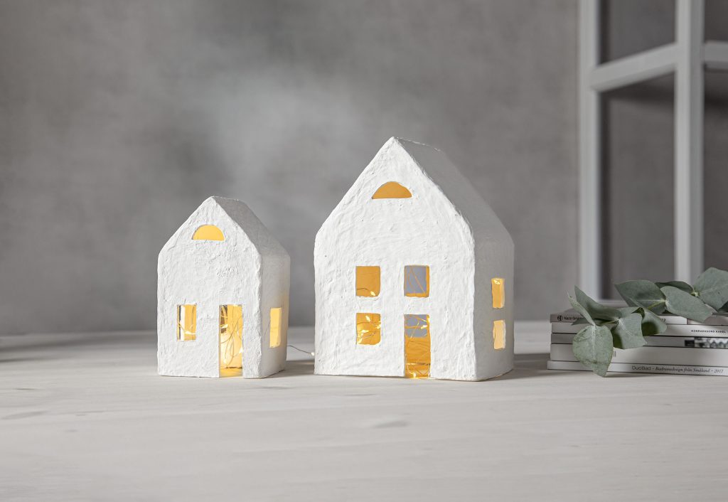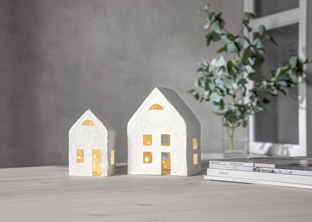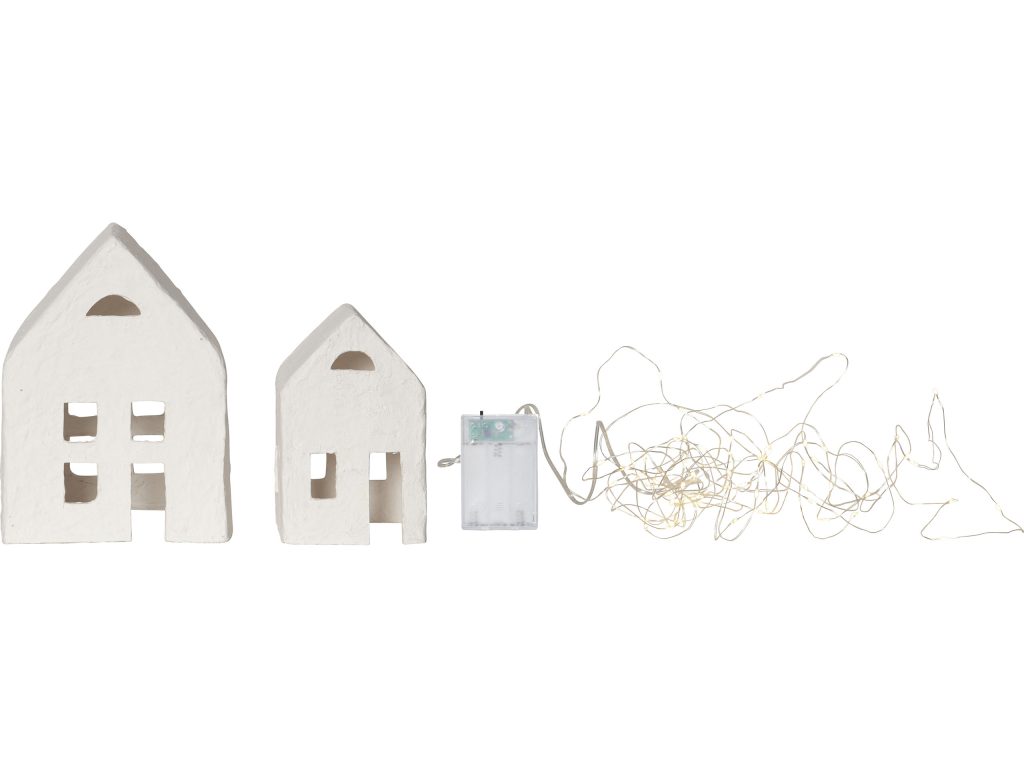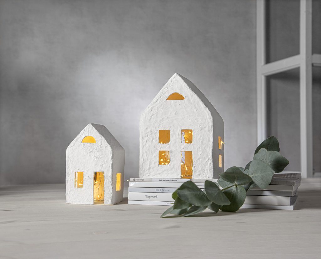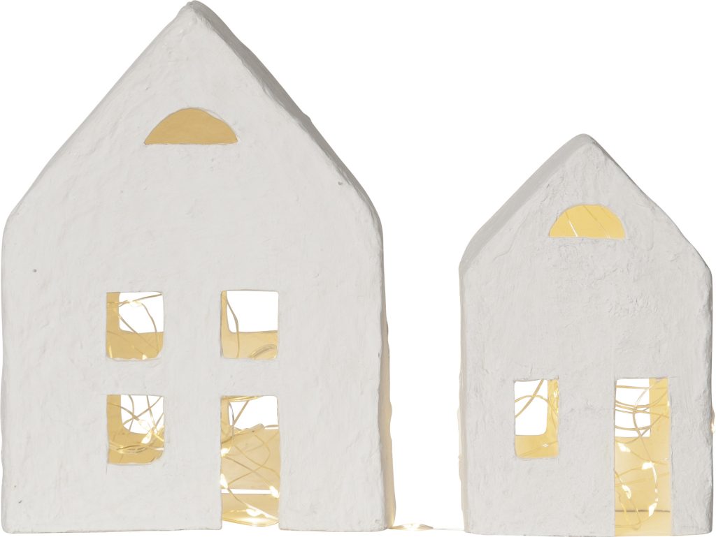 Sisäkäyttöön tarkoitettu Plain-koristesetti koostuu kahdesta paperimassasta valmistetusta talosta ja paristokäyttöisestä valosarjasta. Taloissa käytetty paperimassa on valmistettu T-paitateollisuuden sivutuotteena syntyneestä kierrätyspuuvillasta.
