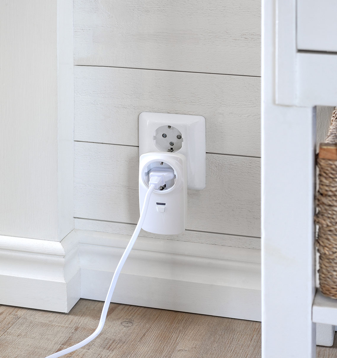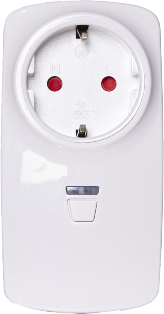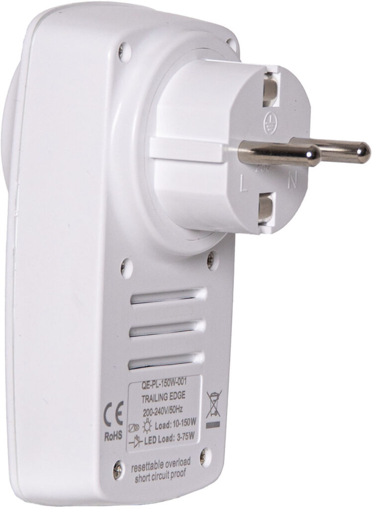Plug-in himmennin, joka liitetään suoraan pistorasiaan. Pitkä napin painallus himmentää tai säätää valoa kirkkaammaksi, lyhyt painallus sammuttaa.