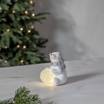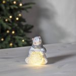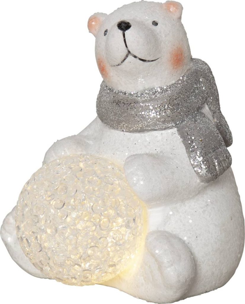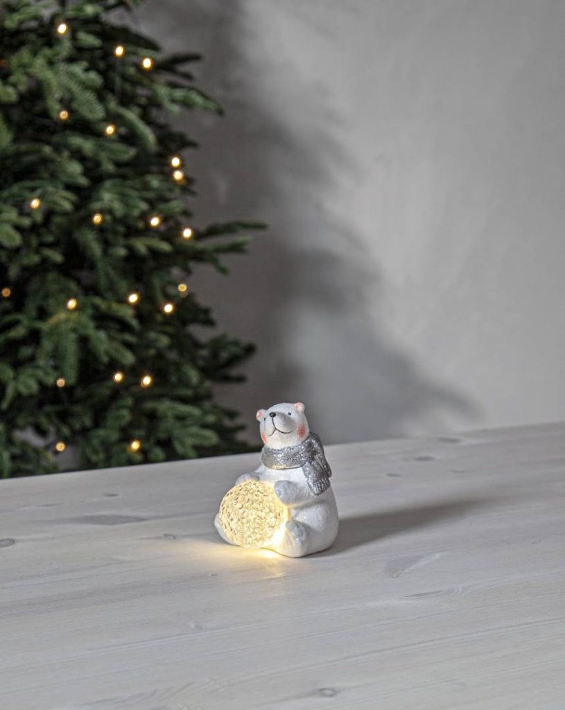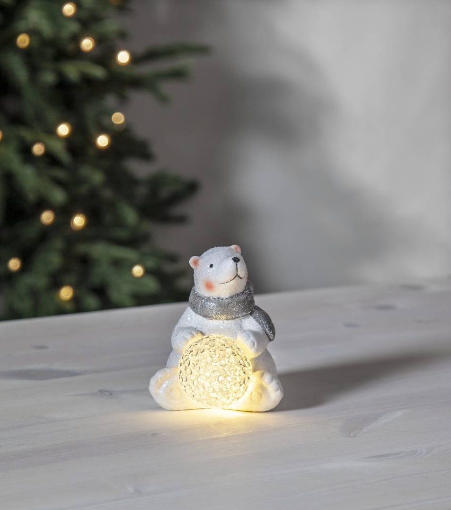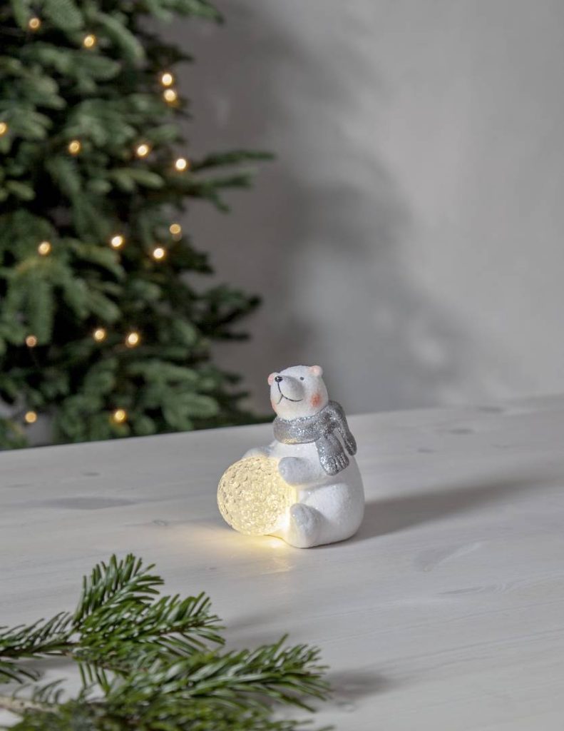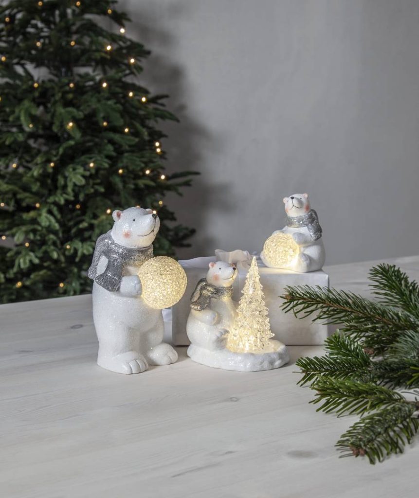 Jääkarhukoriste sisäkäyttöön. Läpinäkyvää lumipalloa valaisee lämpimän valkoinen LED-valo.