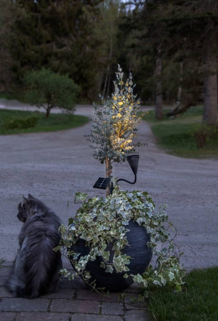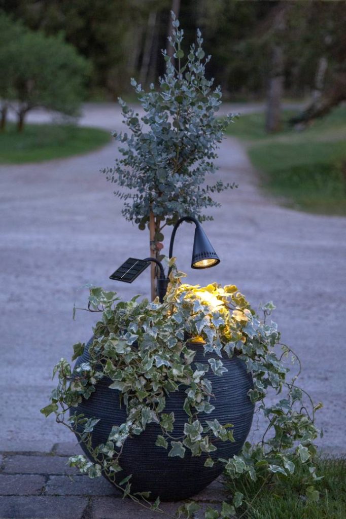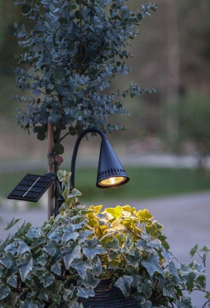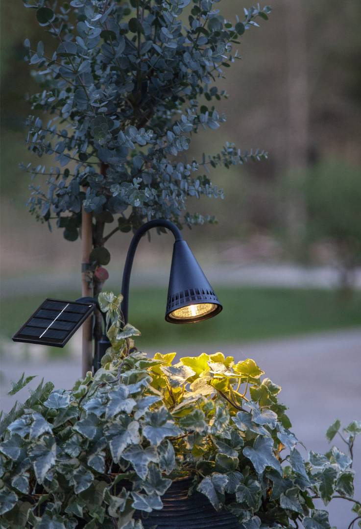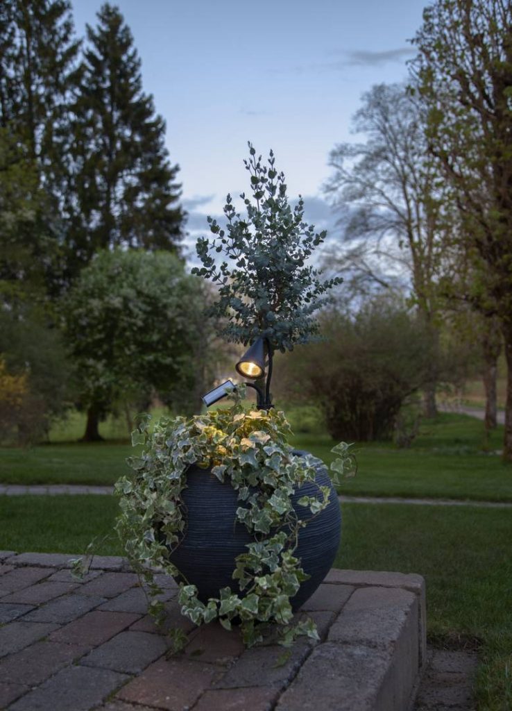 Aurinkokennolla toimiva spottivalaisin sopii esimerkiksi puiden ja pensaiden kohdevalaistukseen. Spottivalaisimessa on lämpimän valkoinen valo ja taivutettava varsi, jonka ansiosta valon suuntaaminen on helppoa. Spotti valaisee lämpimän valkoisella valolla 20 lumenin valoteholla hämärään aikaan.