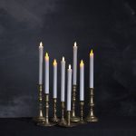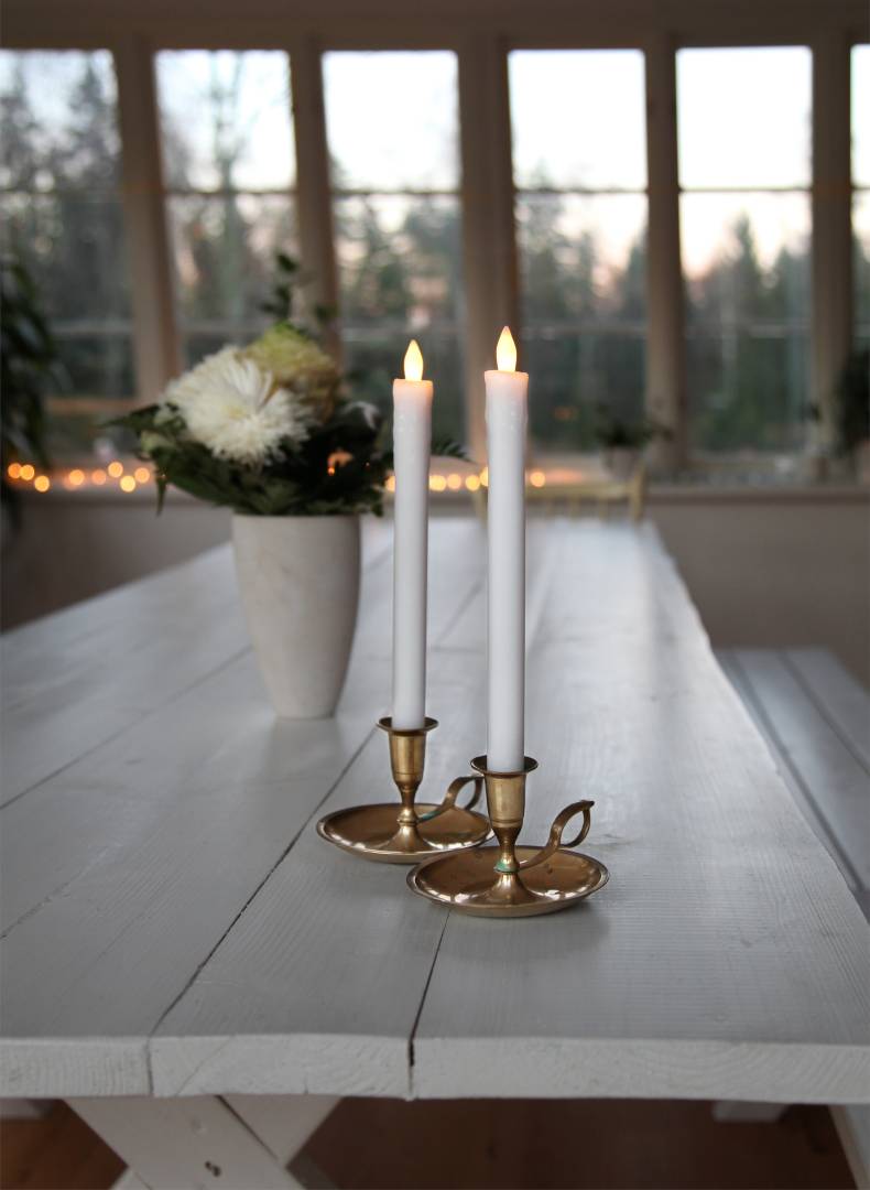Sisäkäyttöön sopiva vahasta valmistettu LED-antiikkikynttilä, jossa on kauniin muotoinen lämpimän valkoinen LED-liekki. Kynttilät sopivat esimerkiksi ruokapöydälle tai eteiseen tuomaan kodikasta ja lämmintä tunnelmavalaistusta. Kynttilä sytytetään ja sammutetaan painamalla liekkiä. Pakkaus sisältää kaksi kynttilää.