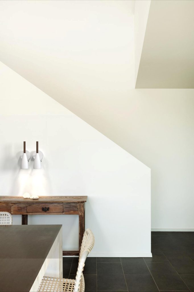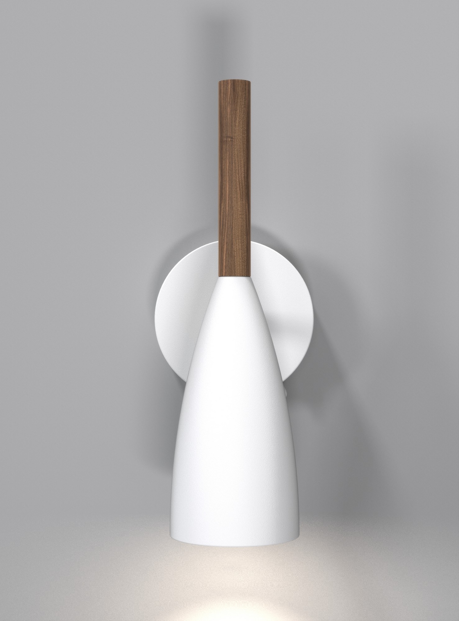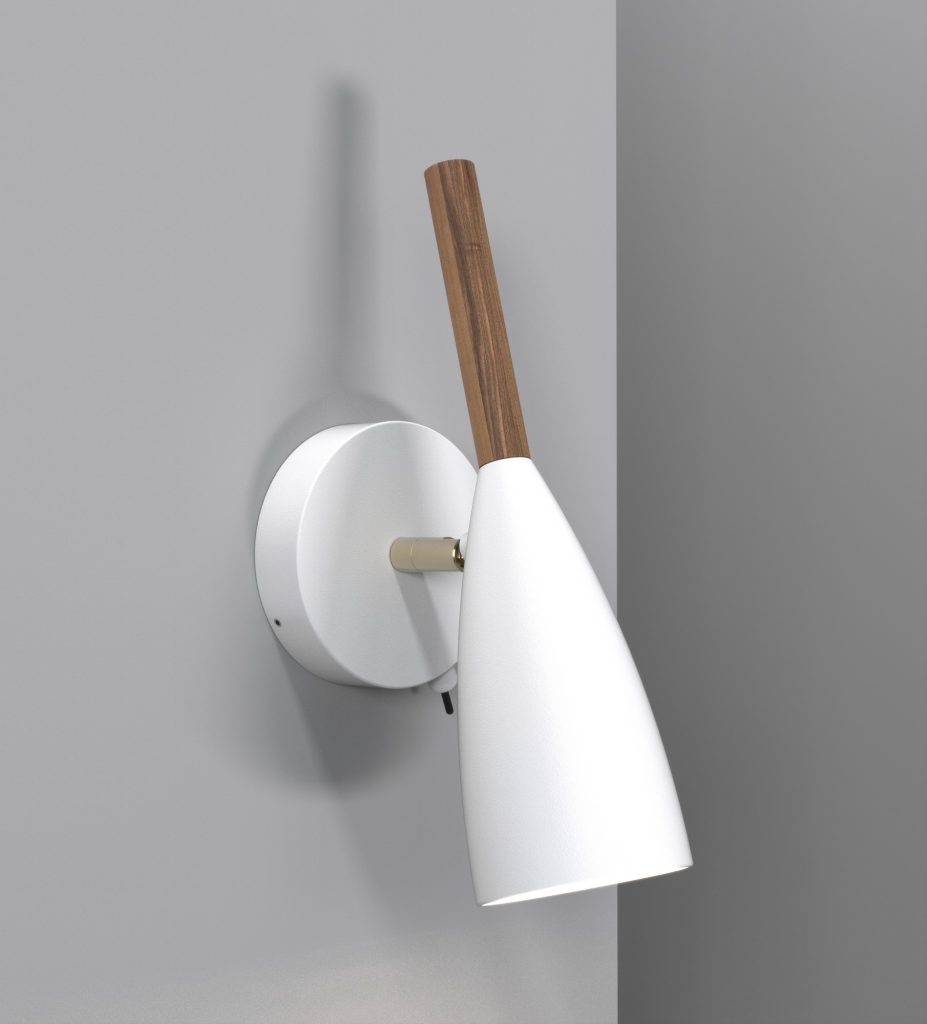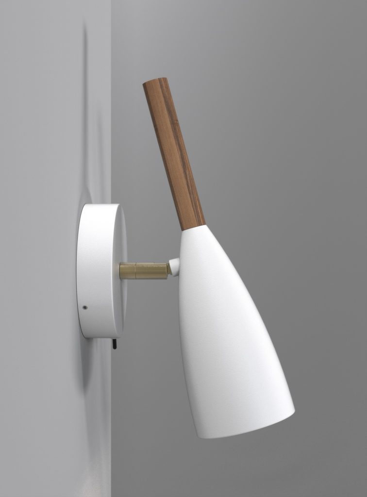 Pure on tyylikäs ja pelkistetty seinävalaisin, jonka katseenvangitsijana on kaunis pähkinäpuinen yksityiskohta.