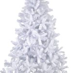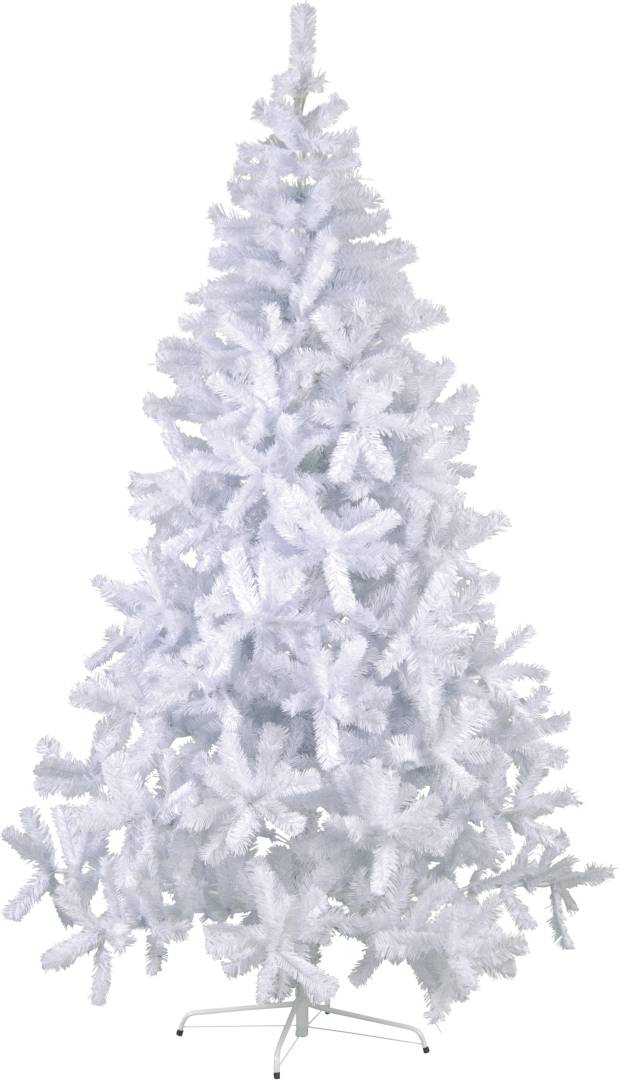 Ulko- ja sisäkäyttöön sopiva valkoinen 210 cm korkea joulukuusi. Kuusen oksien asentoa voi säätää mieleisekseen.