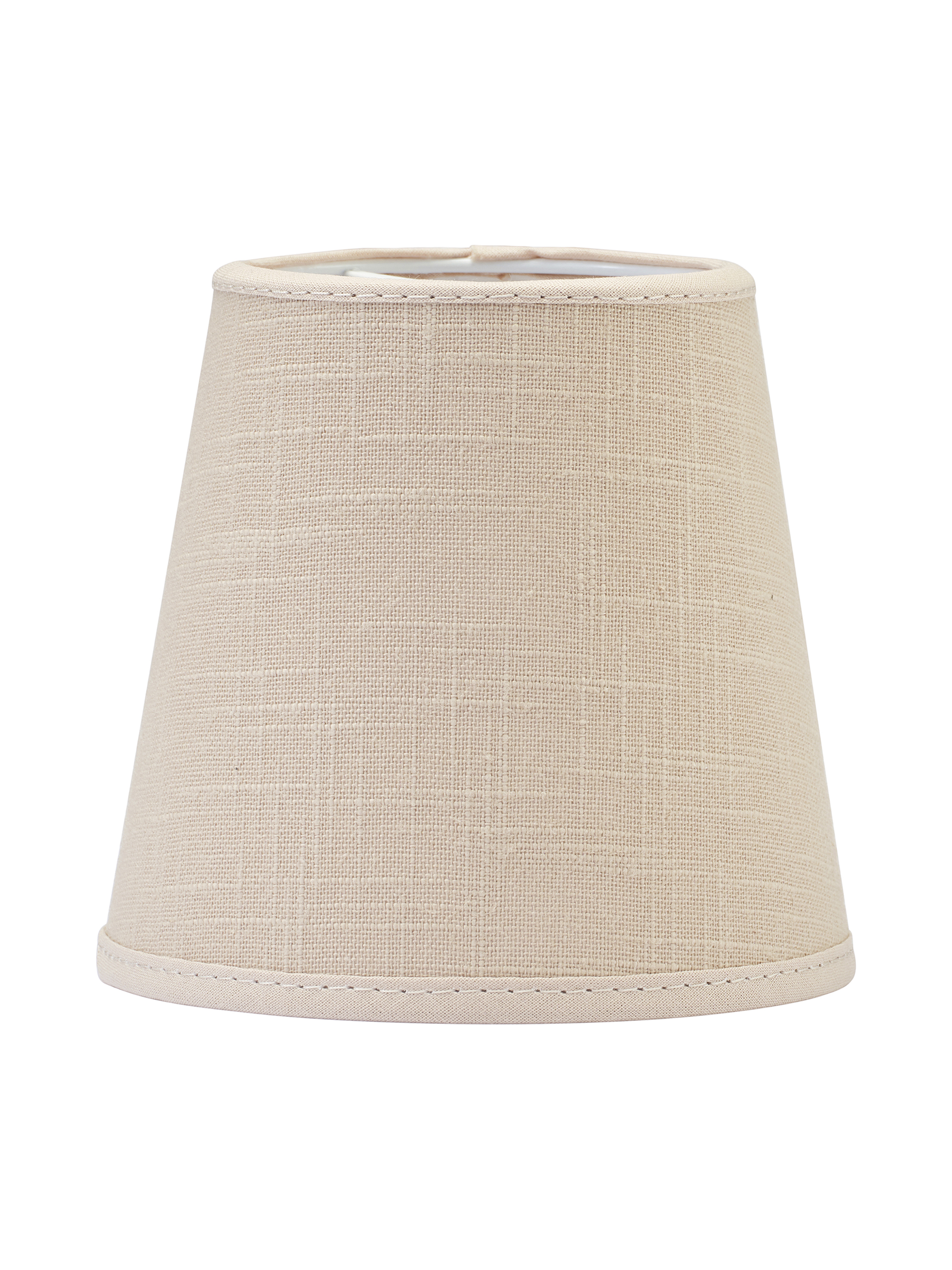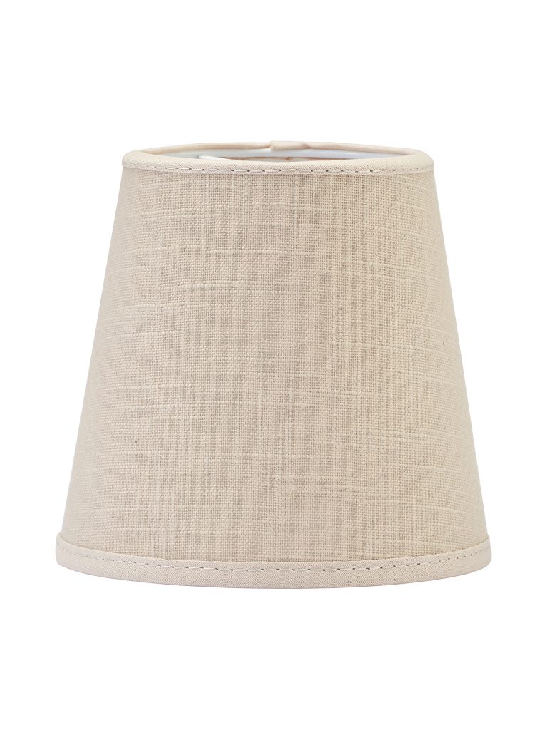 Lampunvarjostin puuvillakangasta. Kankaassa on elävä, pellavakankaan rakennetta muistuttava pinta. Valkoinen sisäpinta ja reunusnauha.