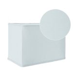 Suorakulmion muotoinen lampunvarjostin napakkaa mattapintaista puuvillakangasta. Valkoinen sisäpinta ja reunusnauha.
