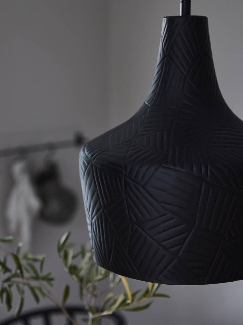 Ribble-riippuvalaisimen metallivarjostimeen on taottu koristeellinen kuviointi. Moderni Ribble sopii moneen eri sisustustyyliin.