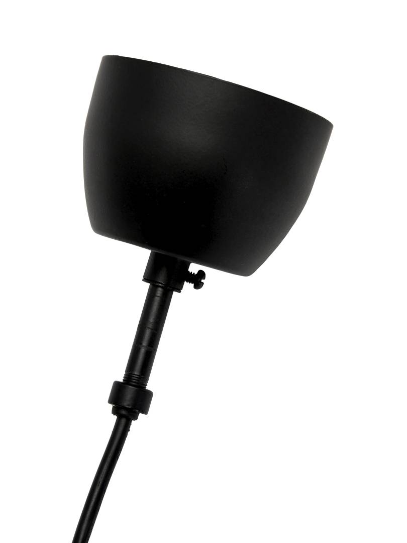 Valaisimessa on 1,5 metriä pitkä ripustusjohto ja musta kattokuppi.