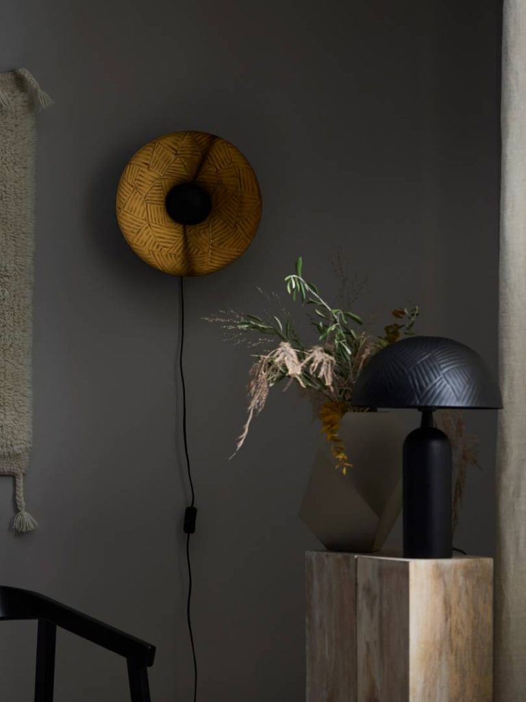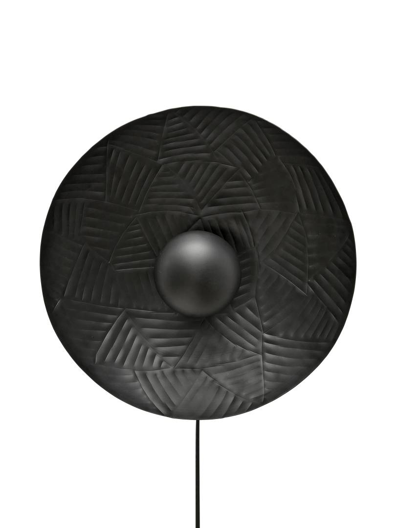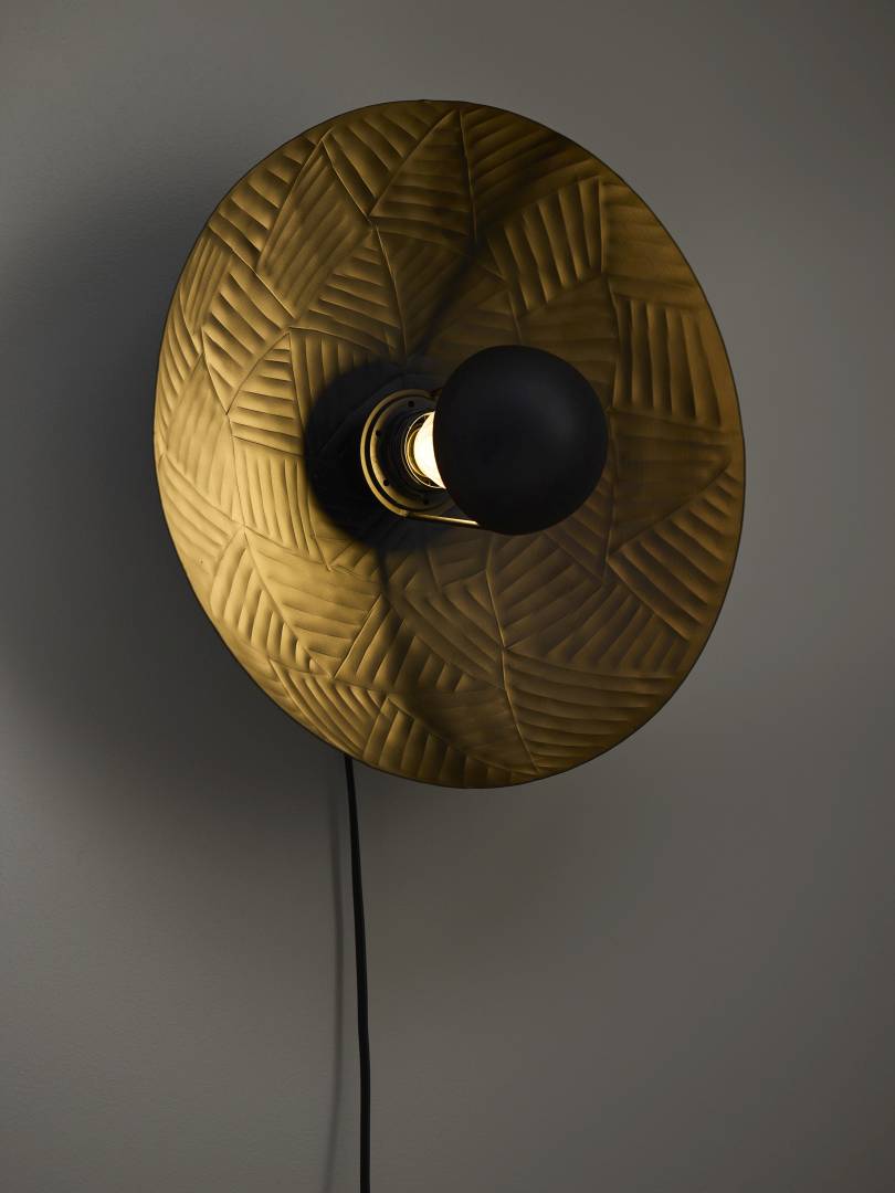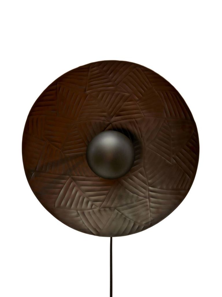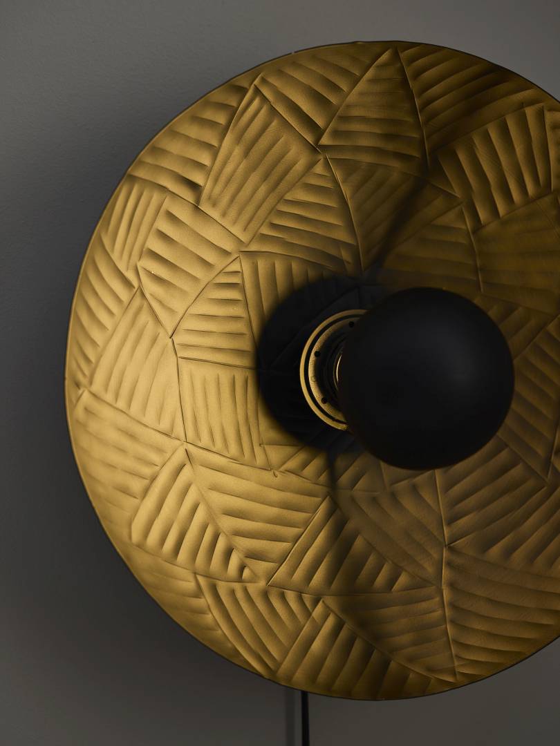 Metallista valmistettu moderni seinävalaisin, jonka pintaan on taottu koristeellinen kuvio. Sopii monen tyyliseen sisustukseen.
