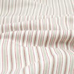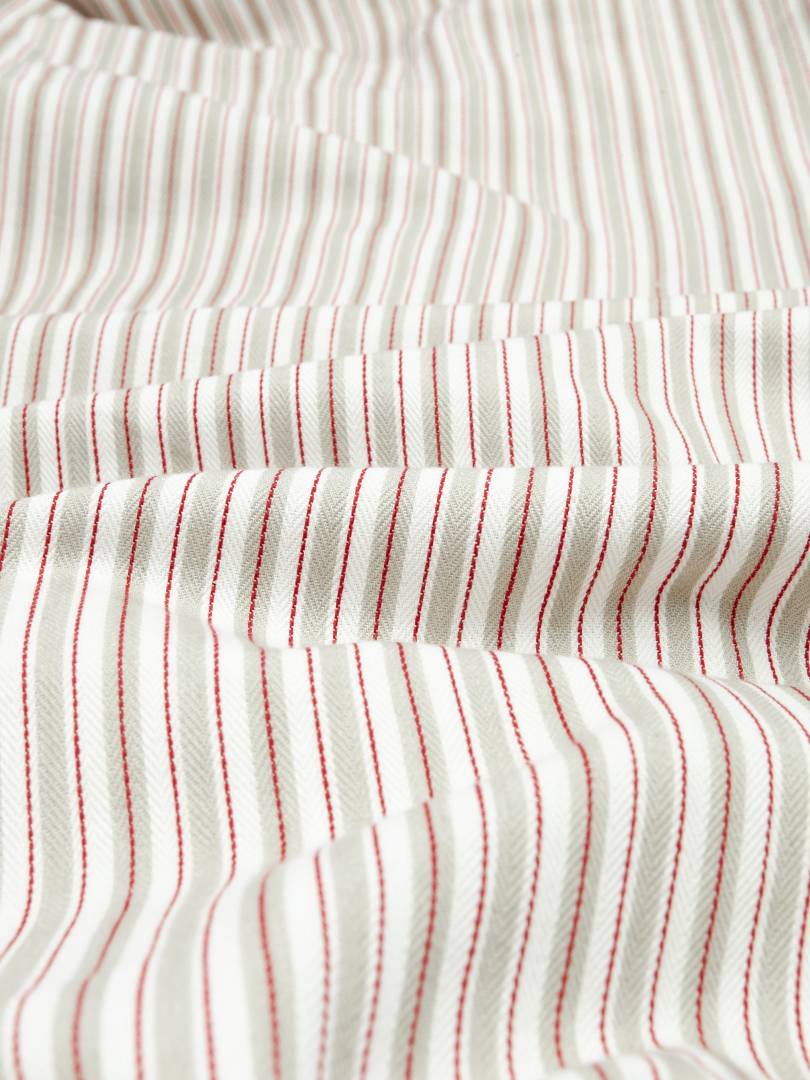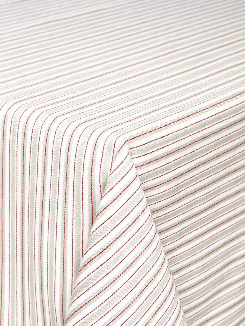 Pöytäliina lankavärjättyä raidallista kangasta, joka pysyy hyvin kuosissa myös pesun jälkeen. Päärmätyt reunat. Täydennä kattaus kangasserveteillä ja alusliinalla.