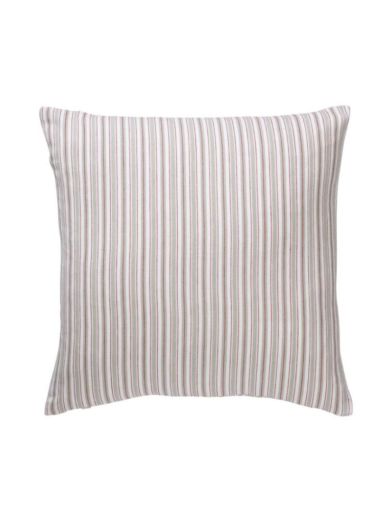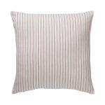 Tyynynpäällinen lankavärjättyä raidallista kangasta. Vetoketju alareunassa.