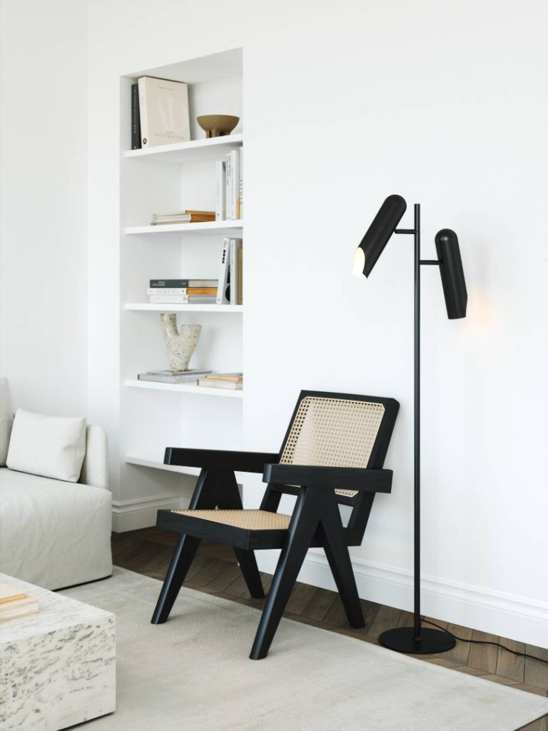 Rochelle-lattiavalaisin on muotoilultaan modernin italialaistyylinen, ja siinä on kapeat, veistokselliset varjostimet. Suunnattavien varjostimien (kääntö 350°, kallistus 40°) ansiosta valaisin sopii mainiosti esimerkiksi luku- tai työskentelyvalaisimeksi.