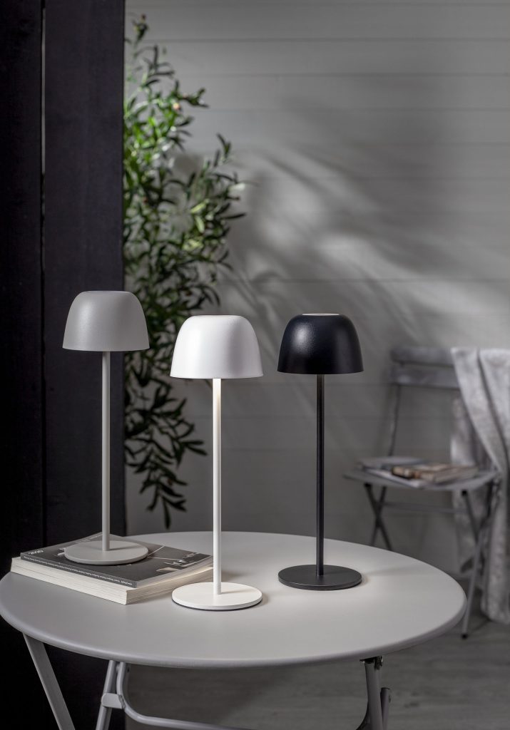 Ronda on sekä ulko- että sisäkäyttöön sopiva ladattava pöytävalaisin, jota voi himmentää portaattomasti koskettamalla sormella varjostimen yläosasta.