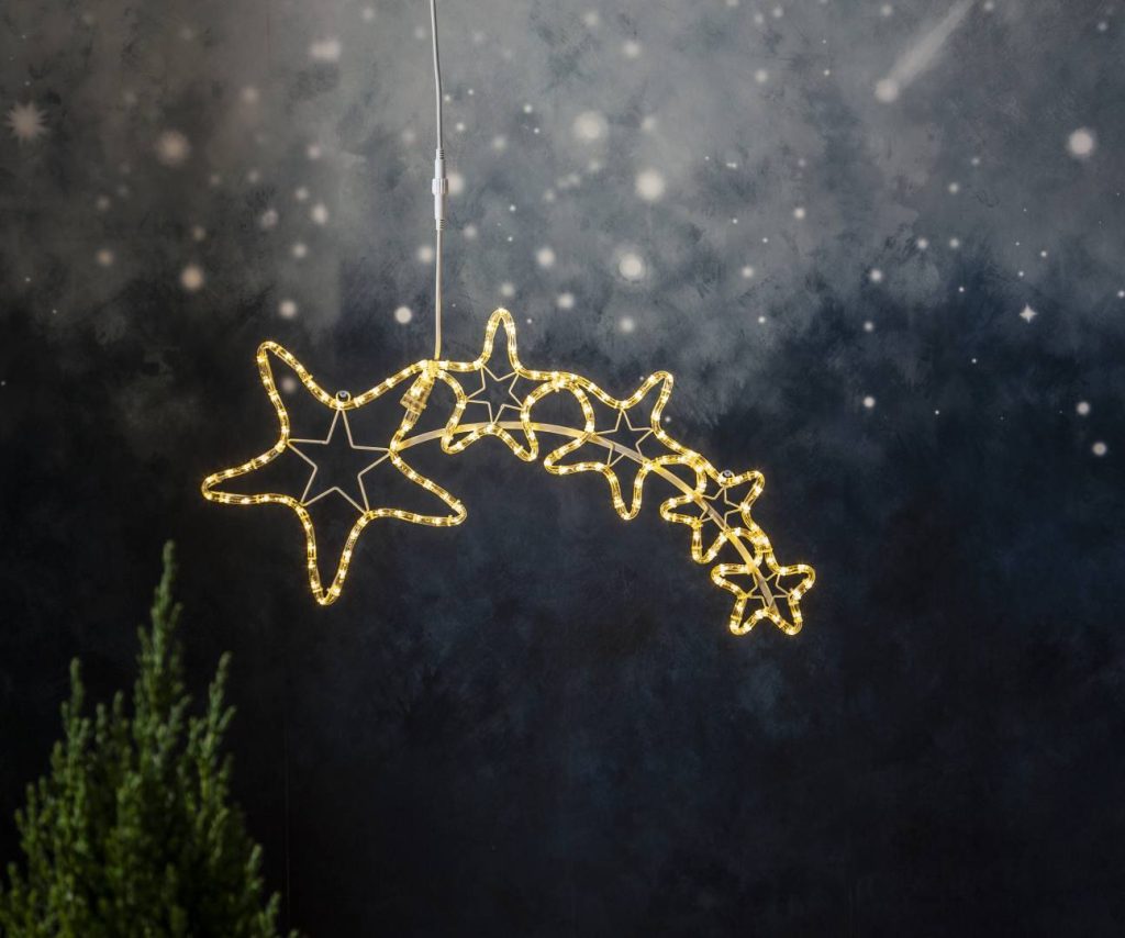 Tähdenlento-siluetti ulkokäyttöön. Valon sävy: lämmin valkoinen.