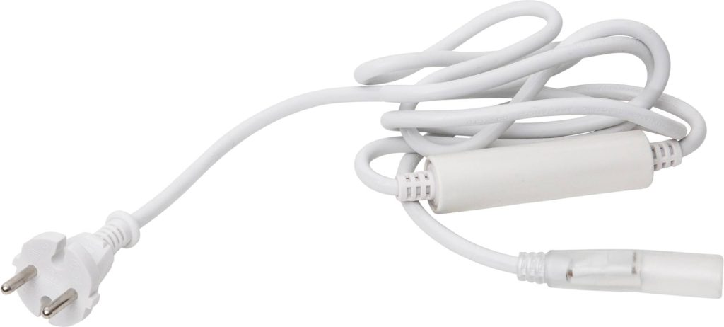 Valkoinen 180 cm pitkä starttikaapeli Ropelight Reel -tuotteille. Sisäkäyttöön.