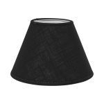 Kartiomainen lampunvarjostin puuvillakangasta. Kankaassa on elävä, pellavakankaan rakennetta muistuttava pinta. Valkoinen sisäpinta ja reunusnauha.