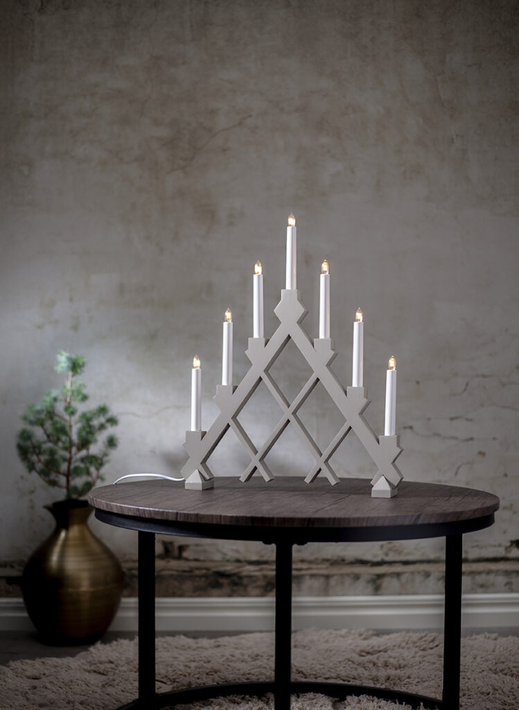 Kaunis beigen värinen puukynttelikkö, jonka upea ristikkokuvio on katseenvangitsija. 7 valonlähteensä ansiosta kynttelikkö luo kodikkaan tunnelmavalaistuksen.