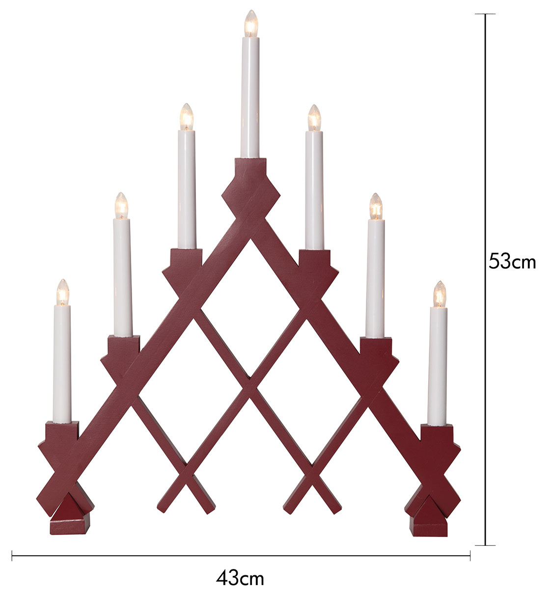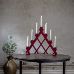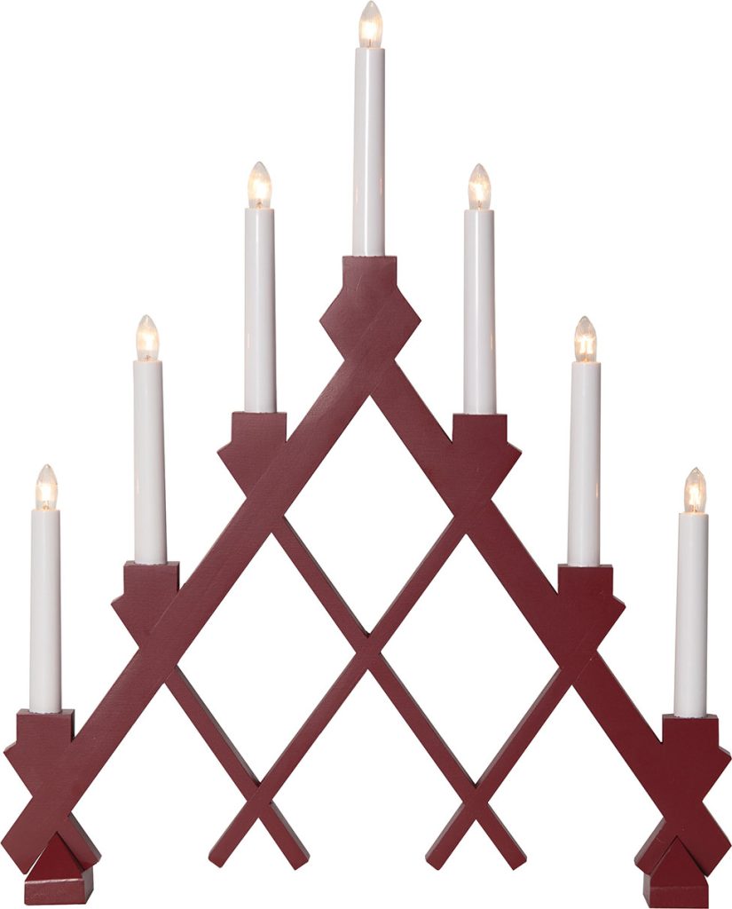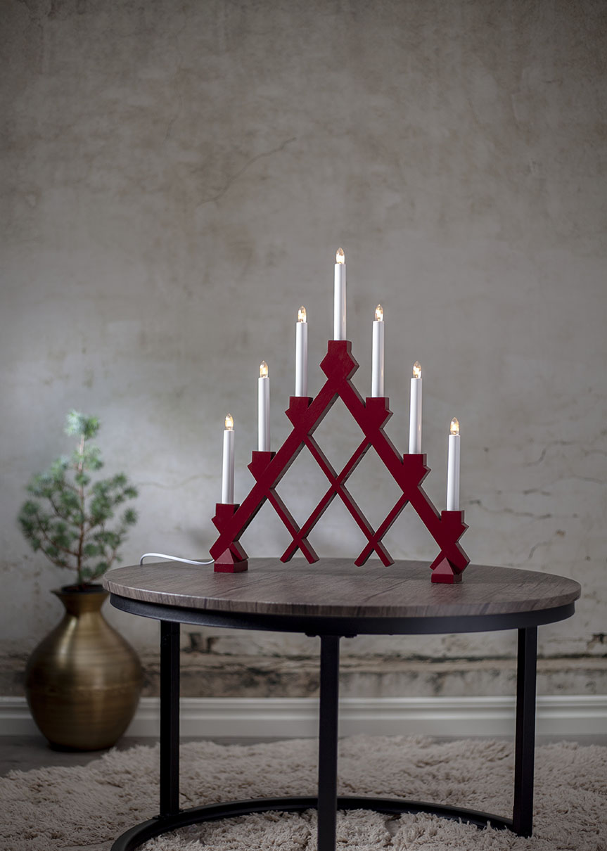 Kaunis puukynttelikkö ihanan punaisessa värissä. Kynttelikön upea ristikkokuvio on katseenvangitsija. 7 valonlähteensä ansiosta kynttelikkö luo kodikkaan tunnelmavalaistuksen.