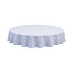Pyöreä pöytäliina Chambray-puuvillakangasta, jossa on 10% pellavaa. Viimeistele kattaus yhteensopivilla kangasserveteillä ja alusliinalla.