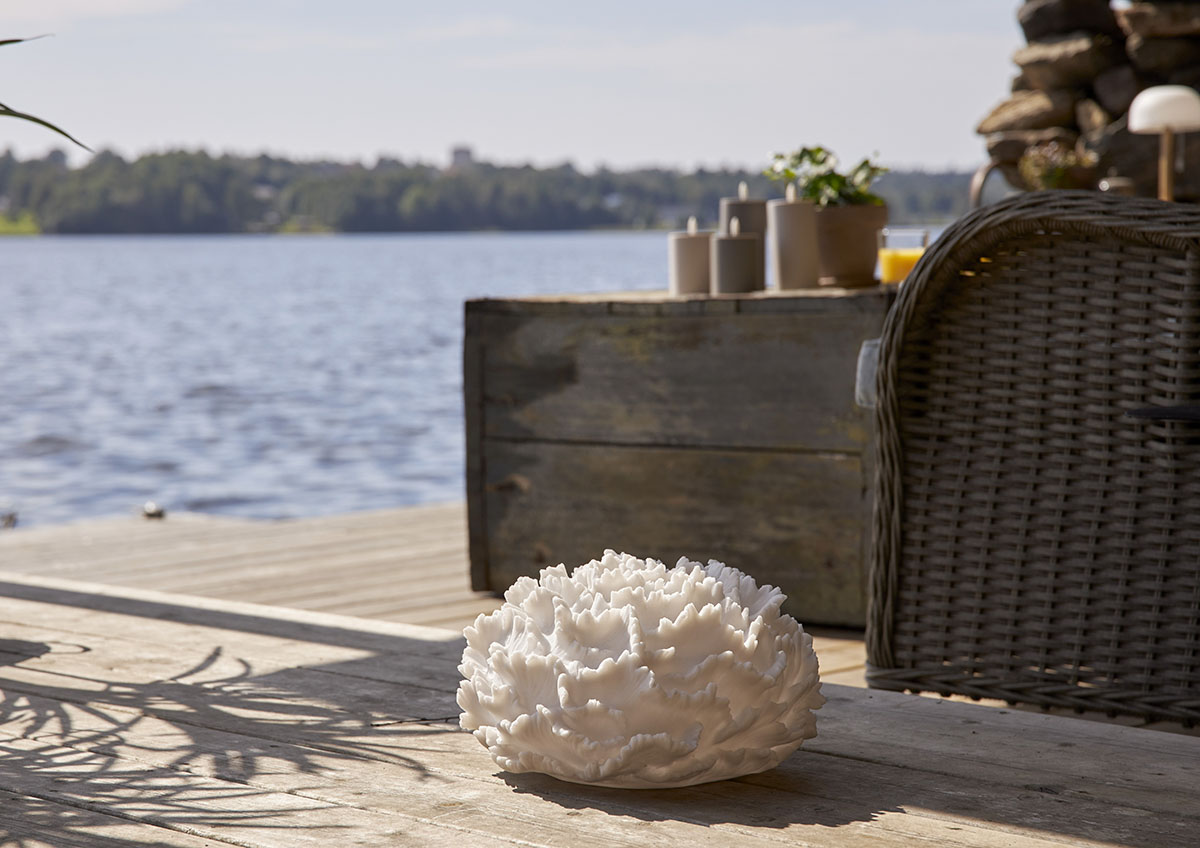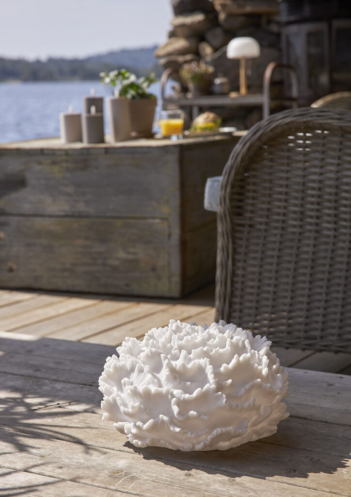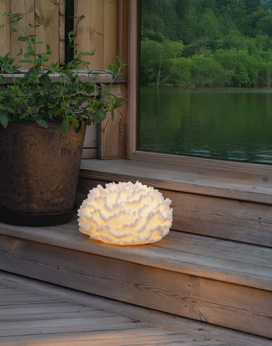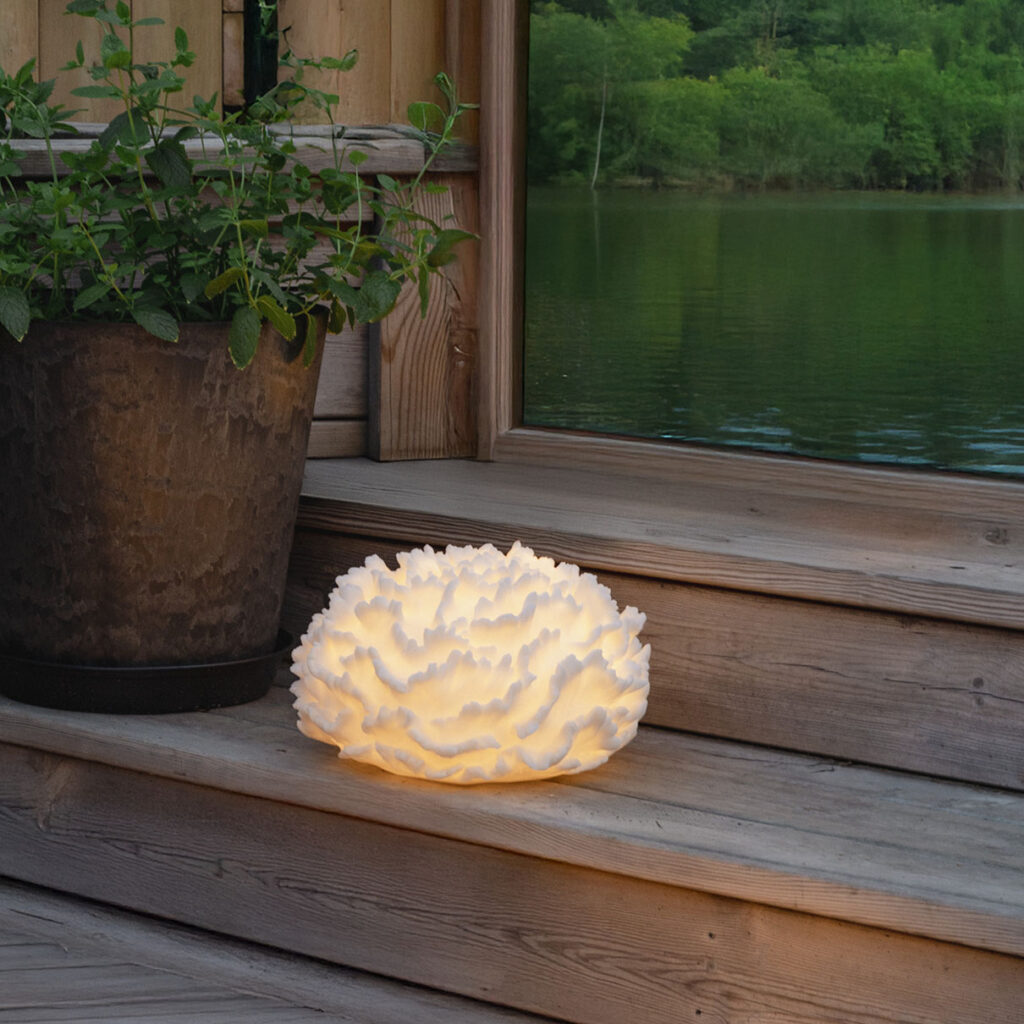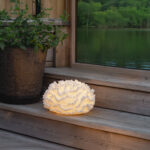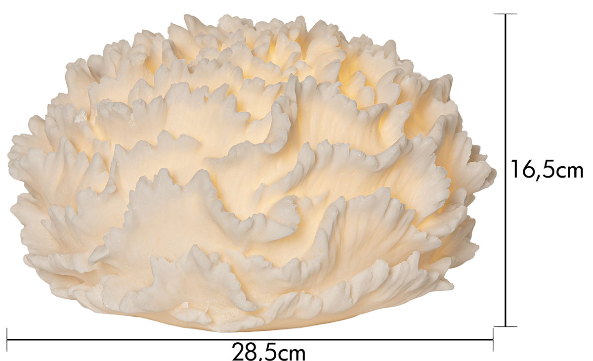Sandy Coral on hiekkakivestä valmistettu korallin muotoinen paristoilla toimiva koriste, joka sopii sekä sisä- että ulkokäyttöön. Se loistaa lämpimän valkoisella valolla ja sopii esimerkiksi puutarhaan tai parvekkeelle. Paristokotelo sijaitsee koristeen pohjassa, ja siinä on ylimääräinen suojakansi ulkokäyttöön.