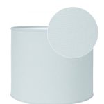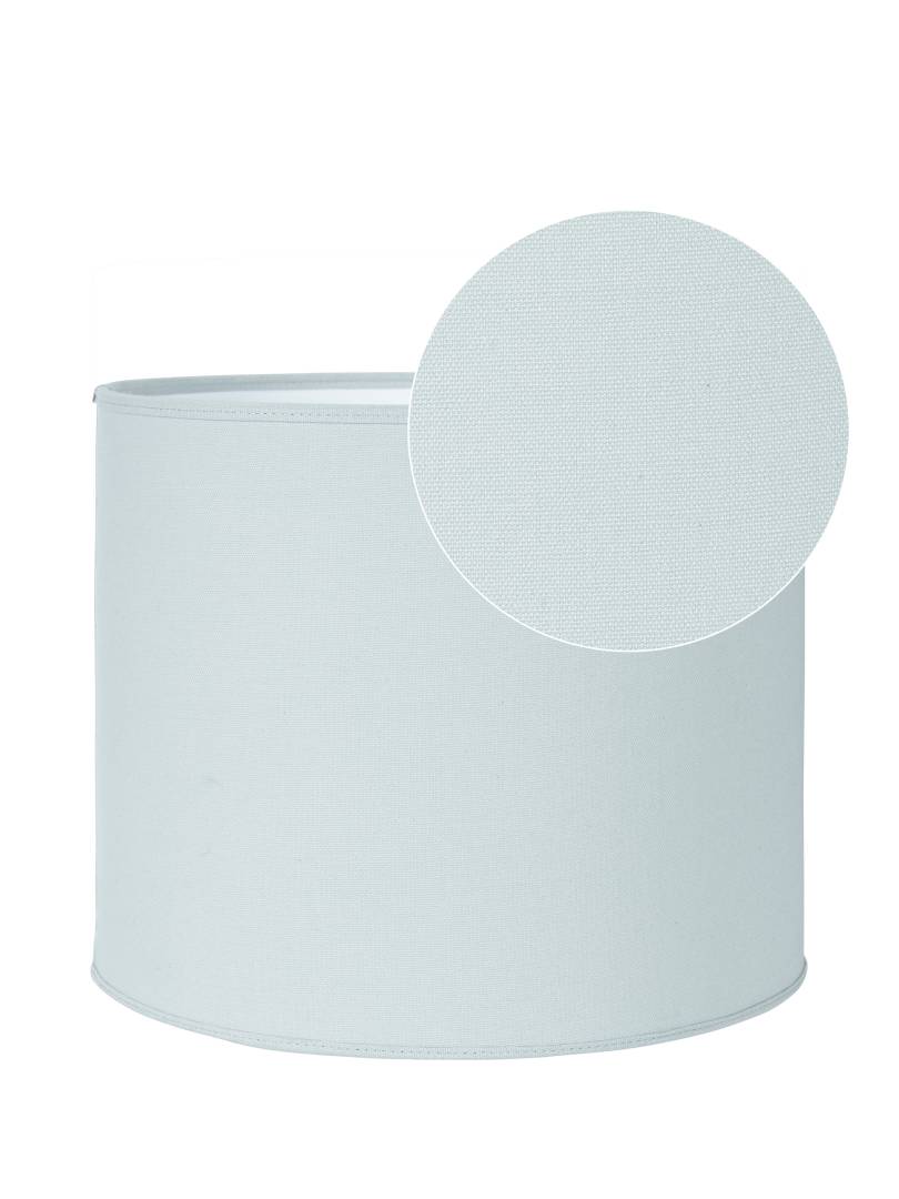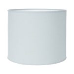 Sylinterin muotoinen lampunvarjostin napakkaa mattapintaista puuvillakangasta. Valkoinen sisäpinta ja reunusnauha.