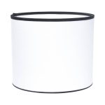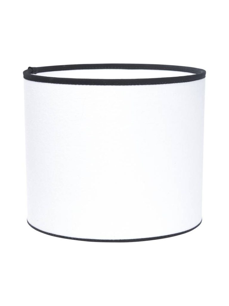 Sylinterin mallinen lampunvarjostin puuvillaa. Musta reunanauha.