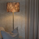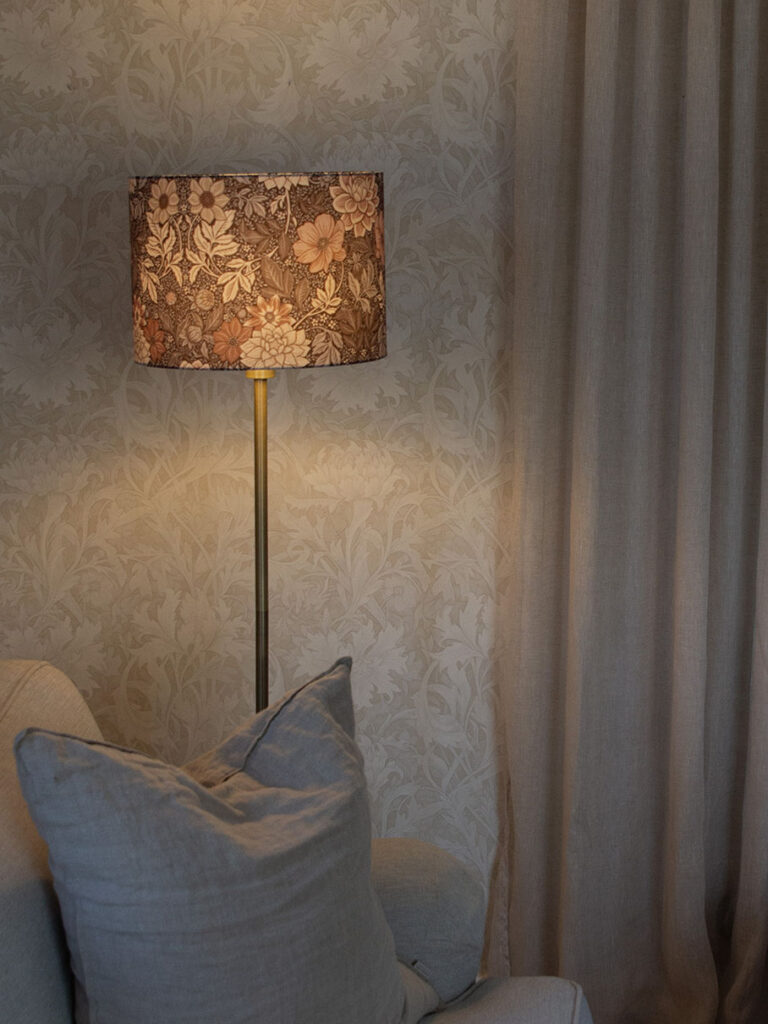 Varjostin on luotu PR Homen ja Boråstapeterin yhteistyönä. Kangas on painettu Boråsissa, Ruotsissa. Kuvion on käsin maalannut suunnittelija Jenny Hahne Gadd Boråstapeterille.