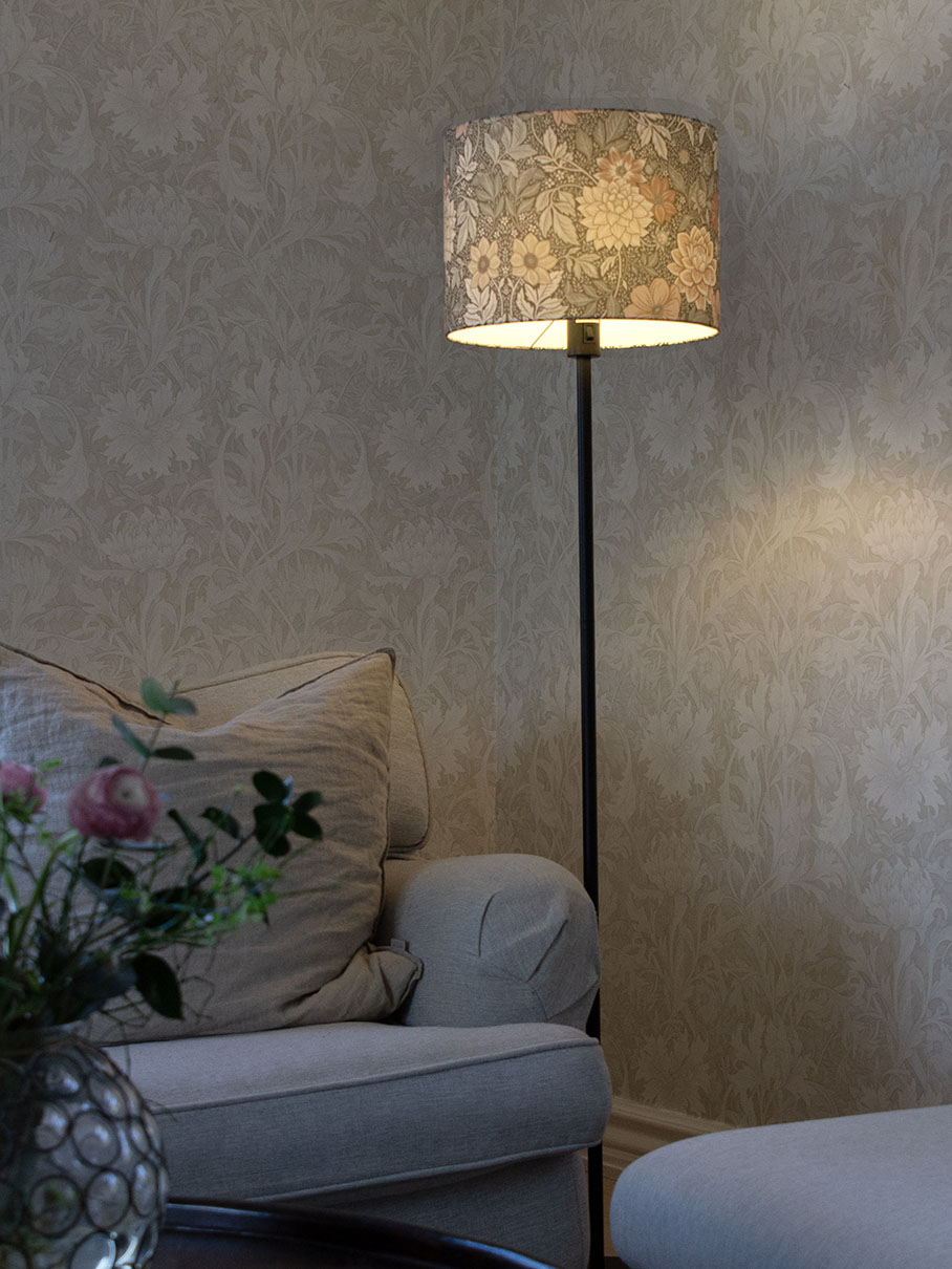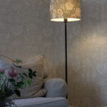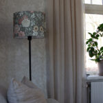 Varjostin on luotu PR Homen ja Boråstapeterin yhteistyönä. Kangas on painettu Boråsissa, Ruotsissa. Kuvion on käsin maalannut suunnittelija Jenny Hahne Gadd Boråstapeterille.