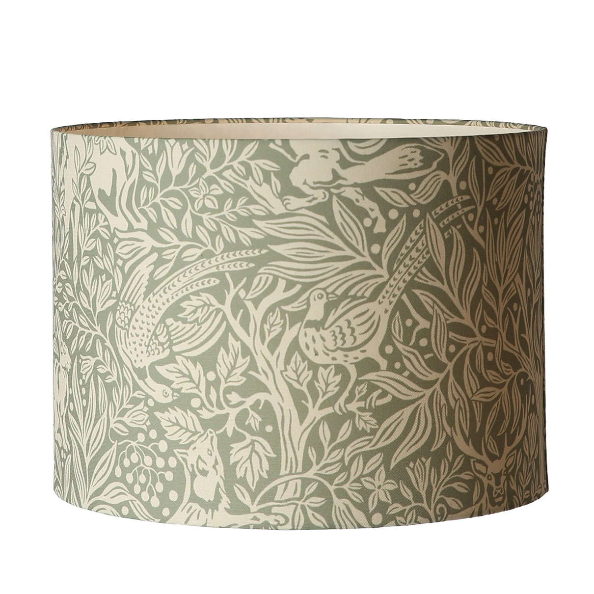 Varjostin on luotu PR Homen ja Boråstapeterin yhteistyönä. Rauhallisen harmaanvihertävän värinen Under the Elder Tree -kangas on 100% kierrätettyä polyesteria, kuvio on digitaalisesti painettu, ja värit tulevat kuosista kauniisti esiin. Kankaan tiheä lehvästö luo kauniin yhtenäisen kuvion ja lähempää tarkasteltuna metsän valtakunnasta paljastuu kauniita yksityiskohtia.