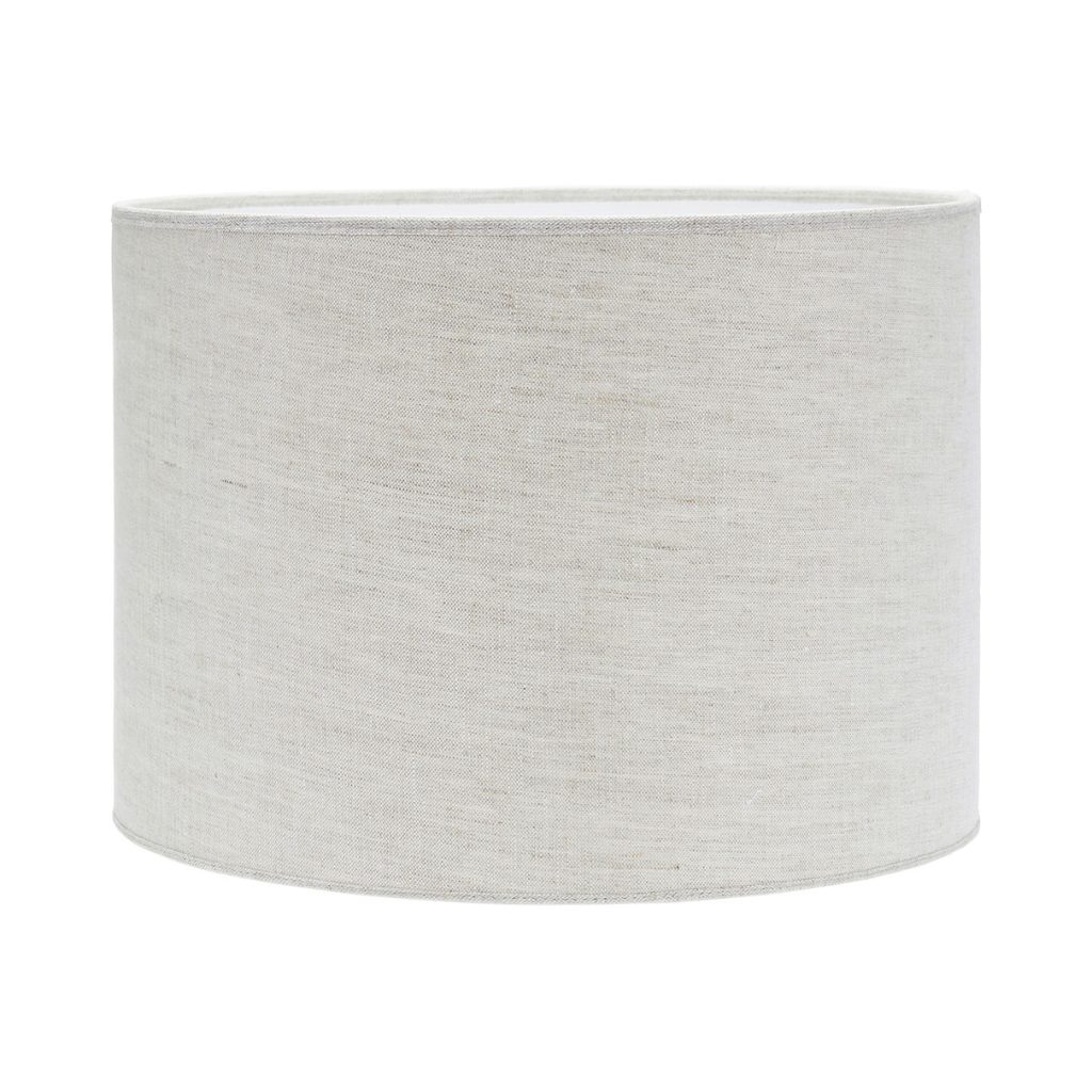 Sylinterin muotoisen Sara-varjostimen kangas on eläväpintaista ja kauniisti hohtavaa pellavaa. Varjostimessa on vaalea sisäpinta, ja reunusnauha on samaa kangasta kuin itse varjostin.