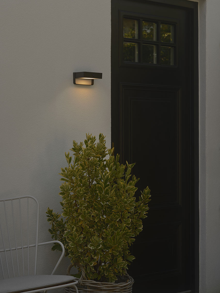 Tanskalaisen designduo Says Who:n Saulio on aurinkoenergialla toimiva seinävalaisin, jossa on yksinkertainen, virtaviivainen muotoilu. Saulio latautuu auringonvalolla päivällä ja käynnistyy, kun se havaitsee liikettä yöllä. Voit valita kahdesta sensoriasetuksesta: pois/päällä tai yövalosta täyteen valoon kävellessäsi ohi. Helppo asennus ilman kaapeleita.