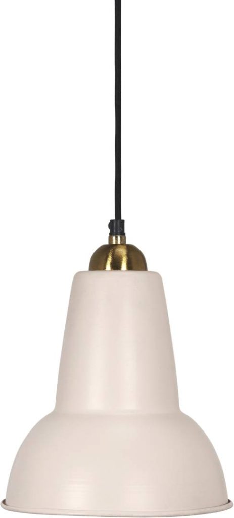 Mattapintainen pieni metalliriippuvalaisin, joka sopii sekä katto- että ikkunavalaisimeksi. Varjostin on ulko- ja sisäpinnalta saman värinen, päällään kaunis messinkiyksityiskohta.