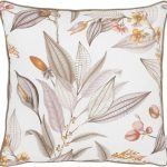 Tyynynpäällinen puuvillaa, painettu kuvio ja samettireunus. Vetoketju alareunassa.