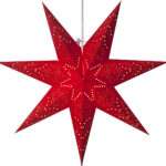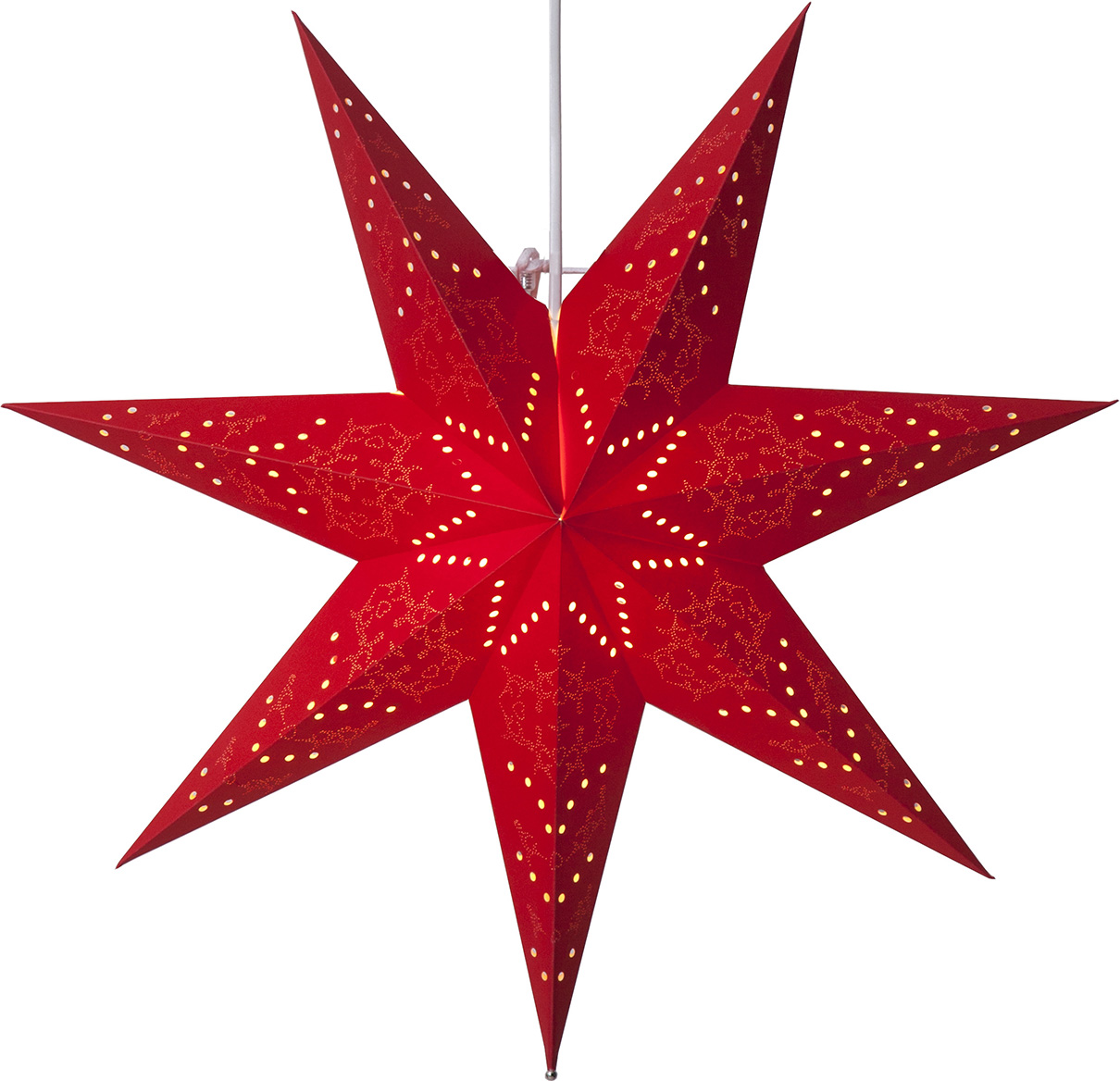 Kuvioitu punainen paperitähti sisäkäyttöön. Ripusta esimerkiksi ikkunaan tuomaan joulutunnelmaa.