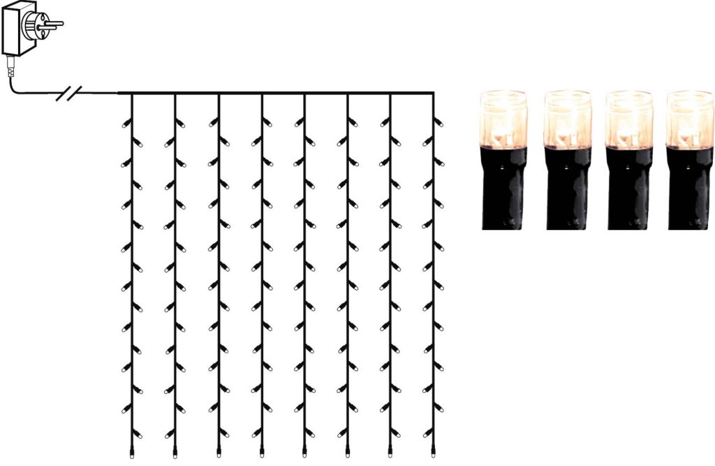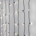 Ulkokäyttöön sopiva 1,3 metriä leveä ja 1,3 metriä korkea valoverho, jossa on mustassa kaapelissa 80 valkoista LED-valoa. Sopii hyvin talviseen, lumiseen maisemaan.