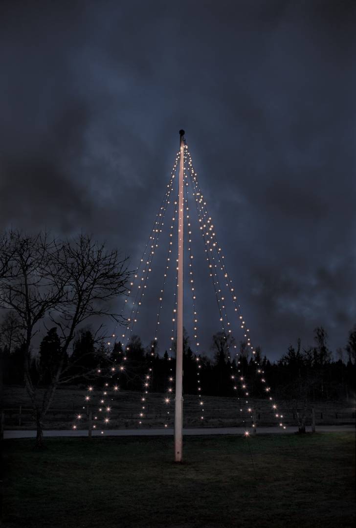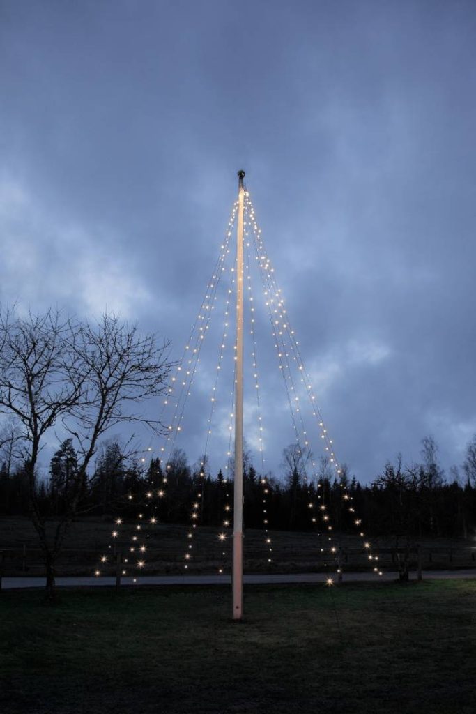 7 m korkea lipputankovalosarja, jossa on 10 nauhassa yhteensä 360 valkoista LED-valoa. Sopii hyvin talviseen, lumiseen maisemaan.