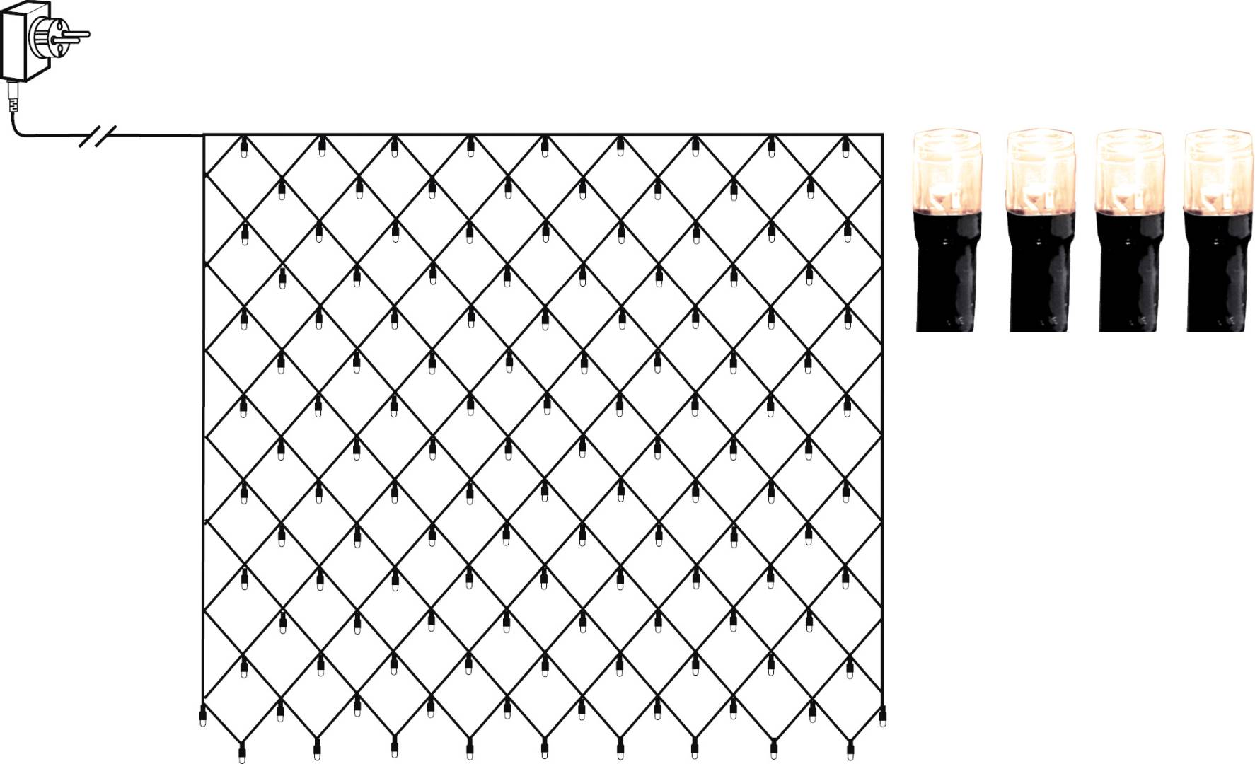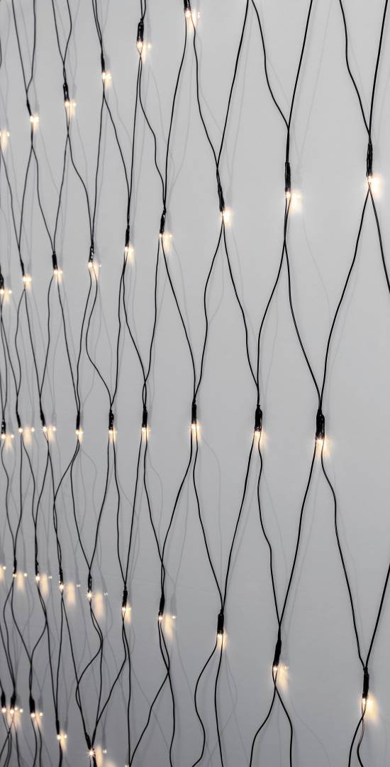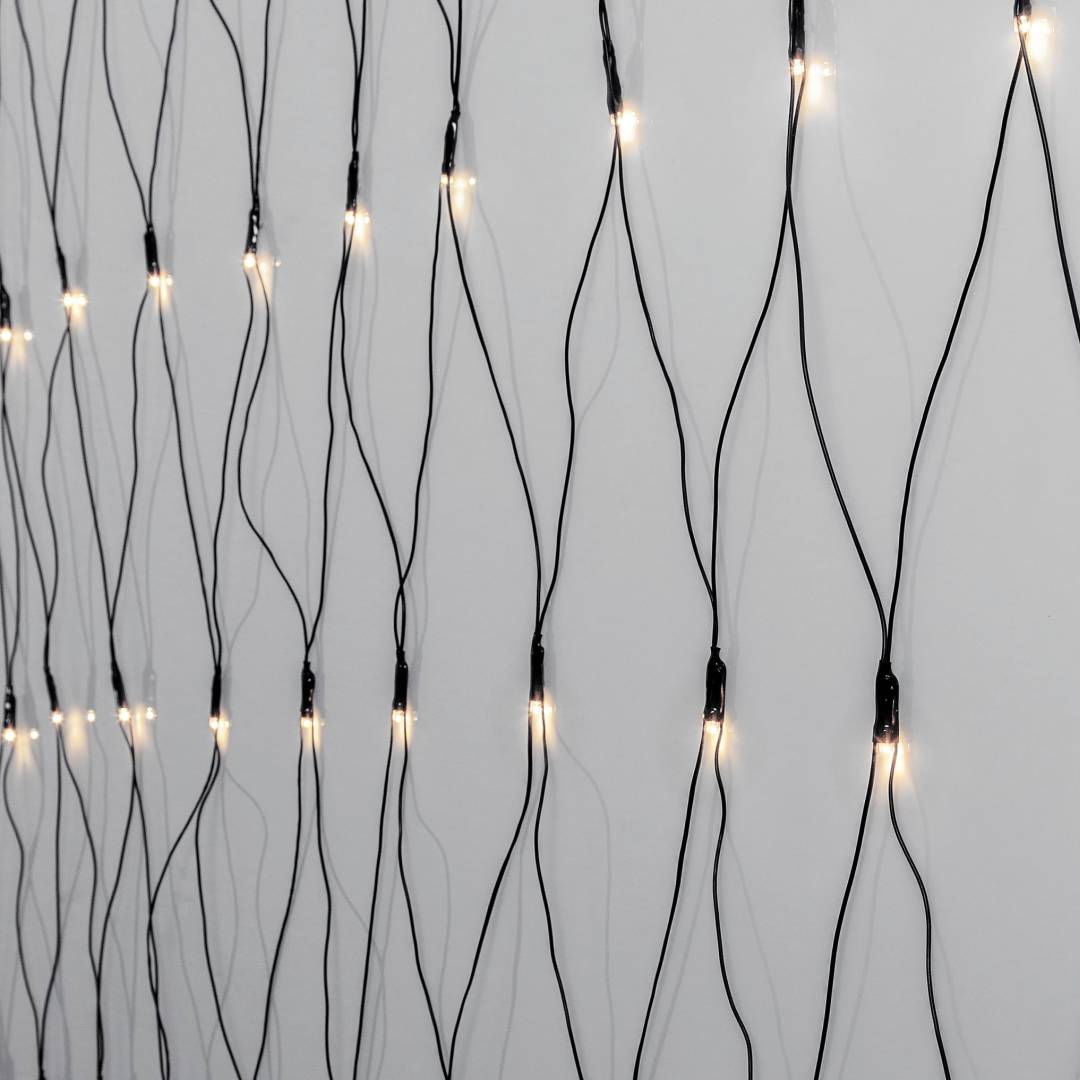 Ulkokäyttöön sopiva 2 metriä leveä ja 2 metriä korkea valoverkko, jossa on mustassa kaapelissa 160 valkoista LED-valoa. Sopii hyvin talviseen, lumiseen maisemaan.