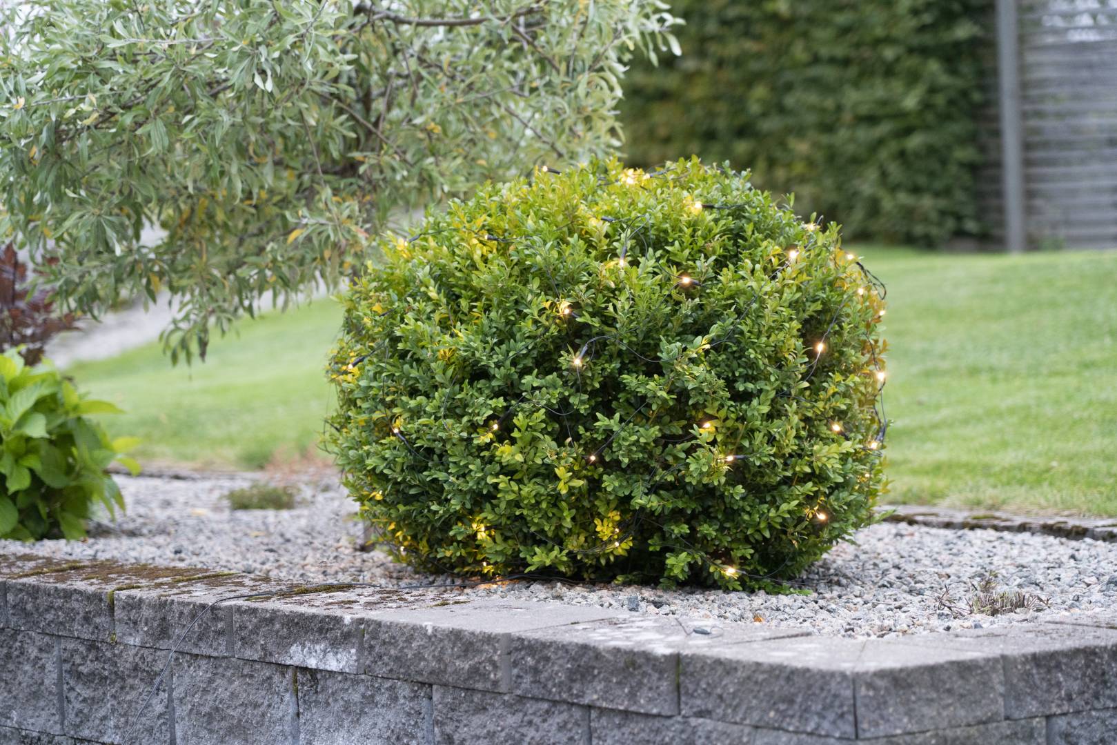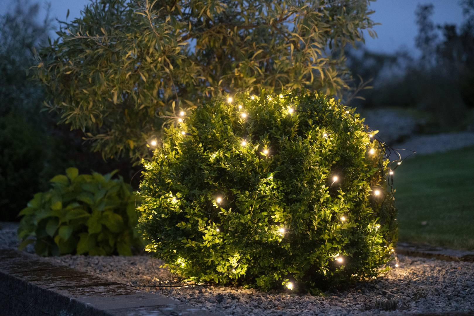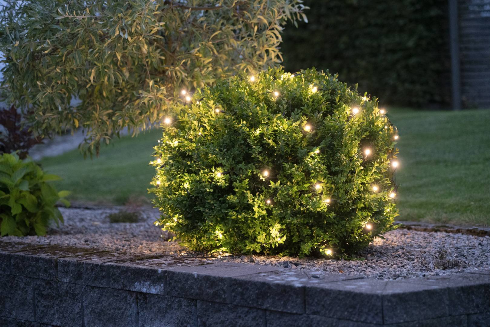 Ulkokäyttöön sopiva 2 metriä leveä ja 2 metriä korkea valoverkko, jossa on mustassa kaapelissa 160 valkoista LED-valoa. Sopii hyvin talviseen, lumiseen maisemaan.