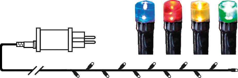 Ulkokäyttöön sopiva 9 metriä pitkä valosarja, jossa on 90 pientä 3 mm moniväristä LED-valopistettä. Kaapeli on väriltään musta.